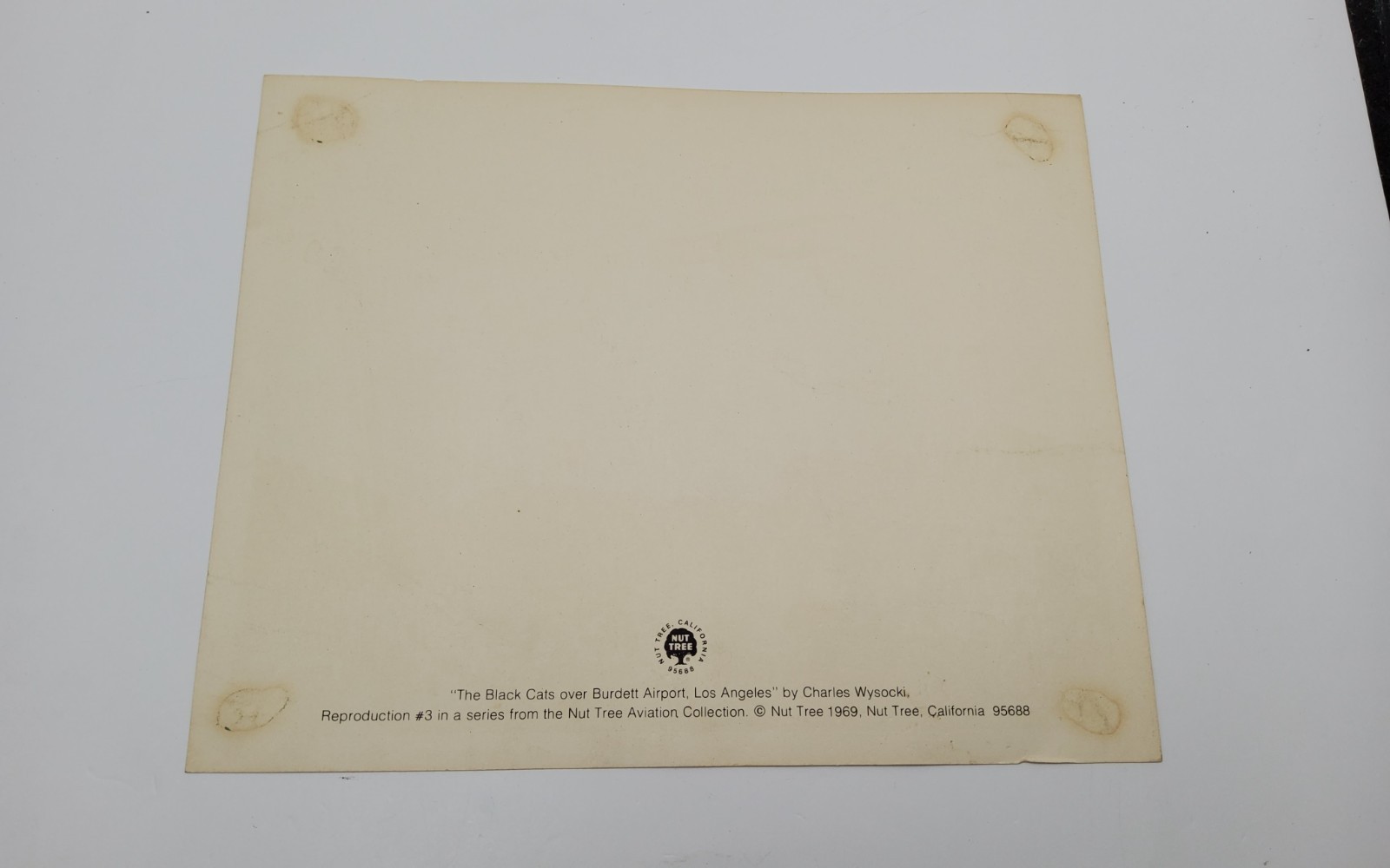 Bring home a piece of aviation history with this vintage 1969 art reproduction by the beloved American artist Charles Wysocki. Titled ?The Black Cats over Burdett Airport, Los Angeles?, this print is Reproduction #3 from the Nut Tree Aviation Collection.