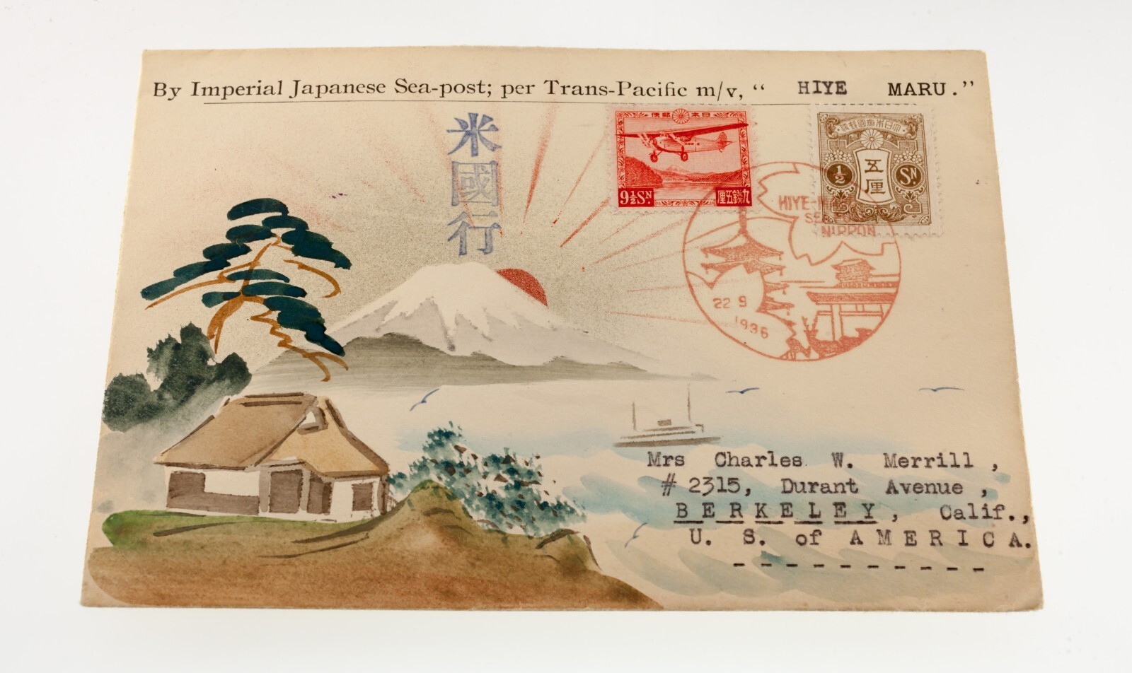 Karl Lewis 1936 Handgemalte Aquarellcover Japan Nach CA, USA Hiye Maru C-6