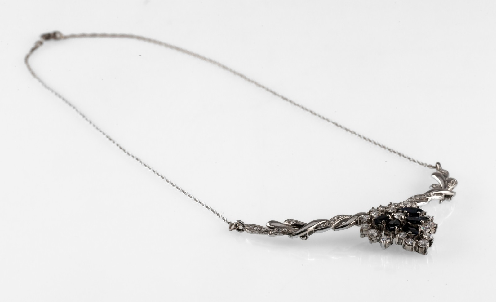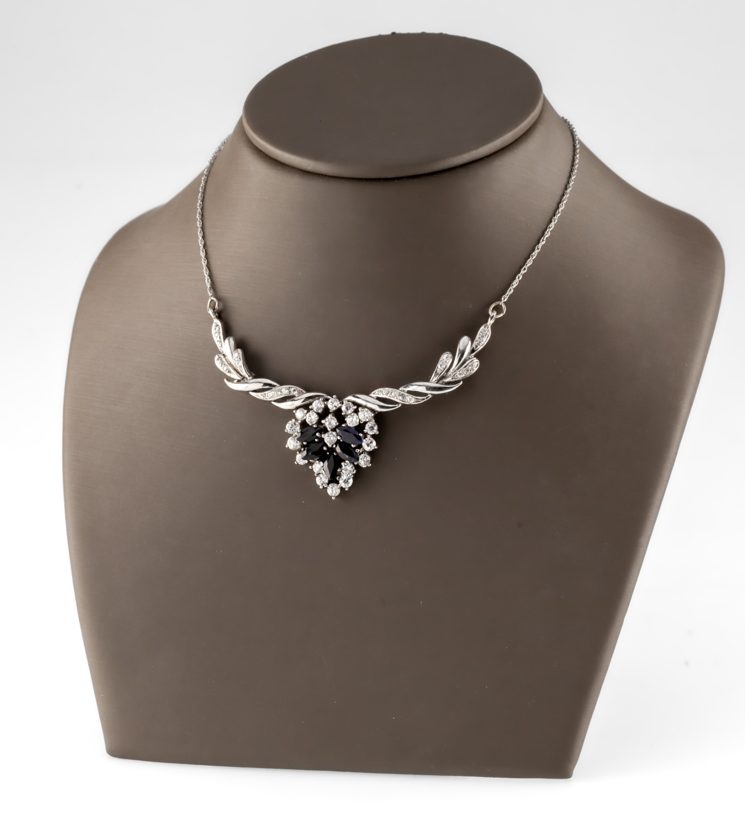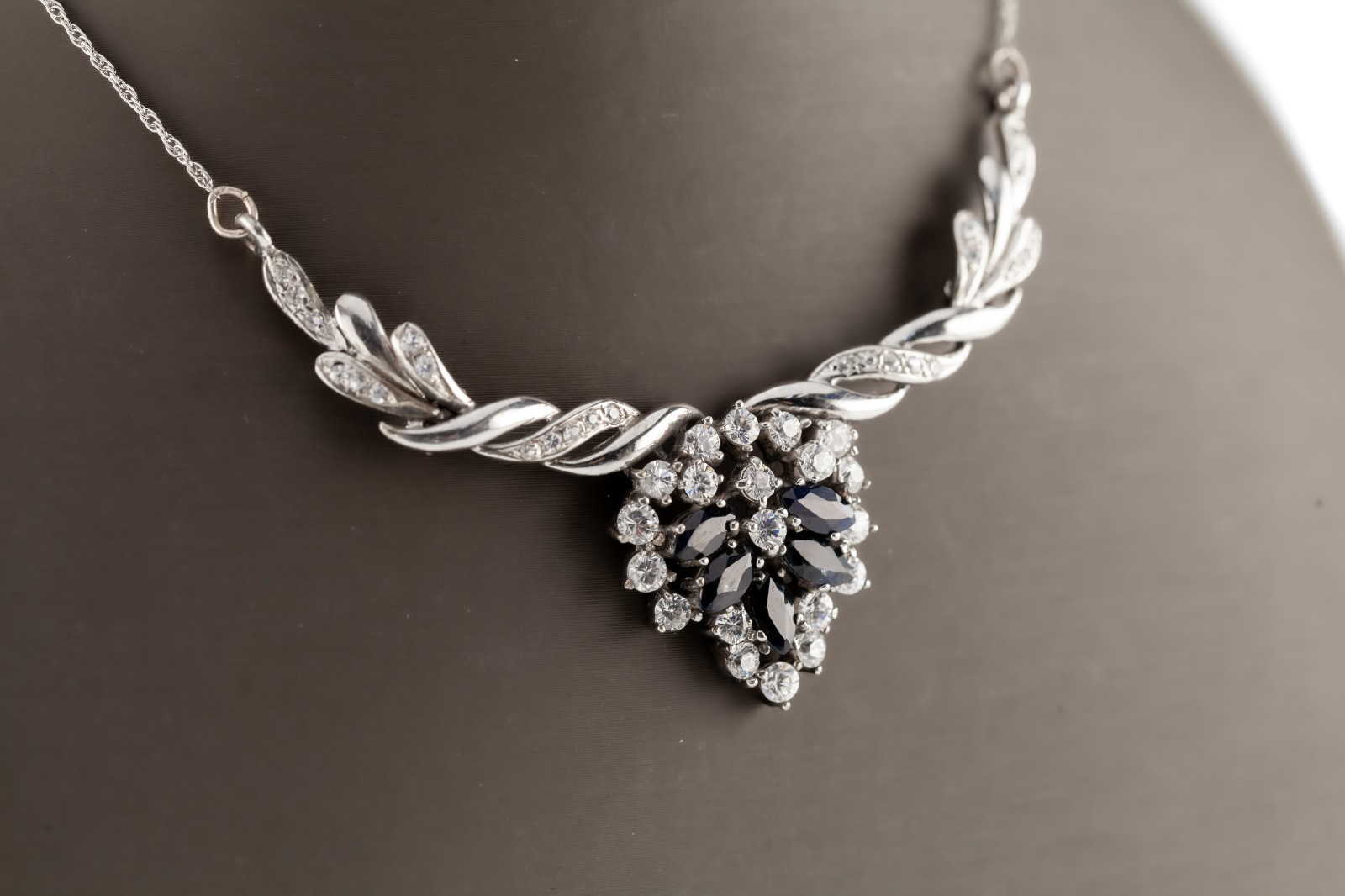 Design a grappolo a foglia di collana in argento sterling pietre marchese blu e zirconia cubica