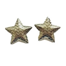 Silver Star Statement Earrings Wavy Textured Design Large 1 3/8"