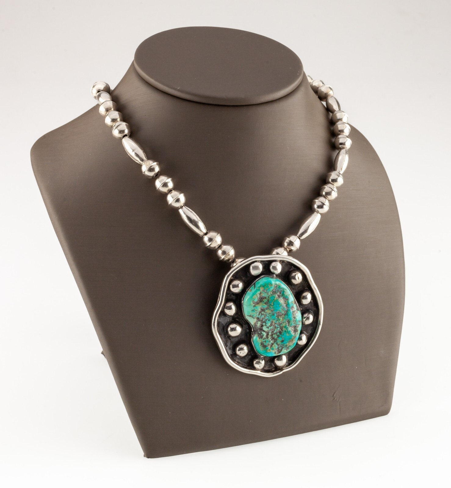 Features Irregular Pendant Plaque w/ Silver Bead Accents and Bezel-Set Tumbled Turquoise