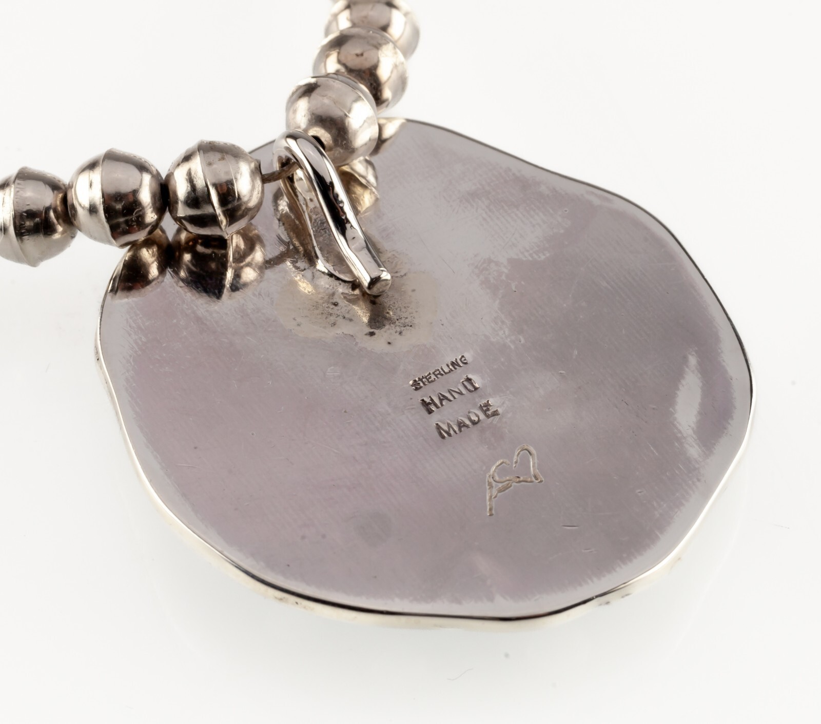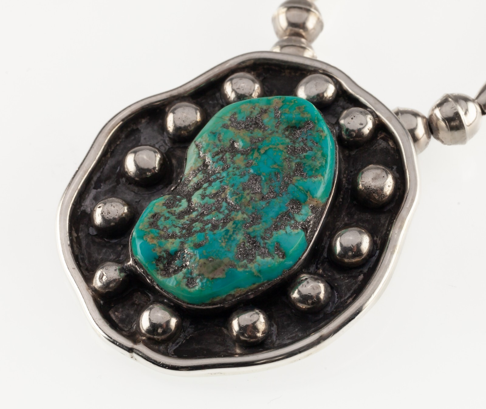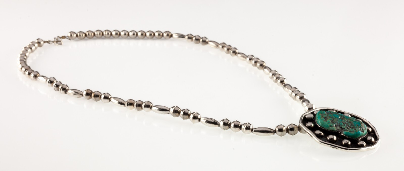 Sterling Silver Tumbled Navajo Turquoise Handmade Pendant w/ Silver Bead Chain