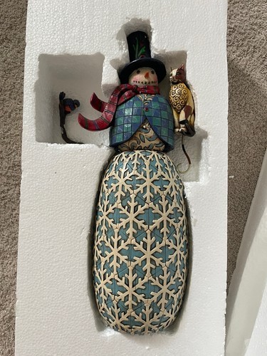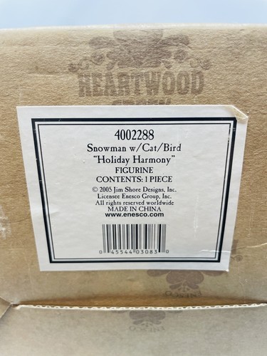for a Jim Shore heartwood creek holiday harmony figurine. Comes in original box. The bird side of the snowmans arm has been damaged and come undone. It can be stuck back on since there is a peg.
