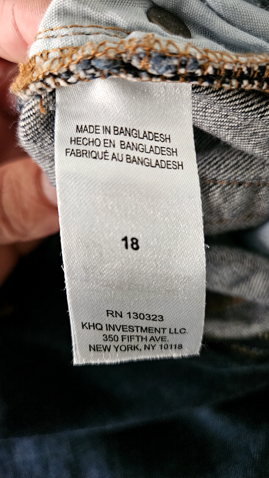 The size 18 denim is made from quality cotton, ensuring durability and ease of care. A secure zipper and button closure ensures a snug fit, making these jeans a practical choice for everyday wear with an adjustable waist for extra comfort. With their timeless appeal and durable construction, they're ideal for outings and activities that call for a touch of casual sophistication.