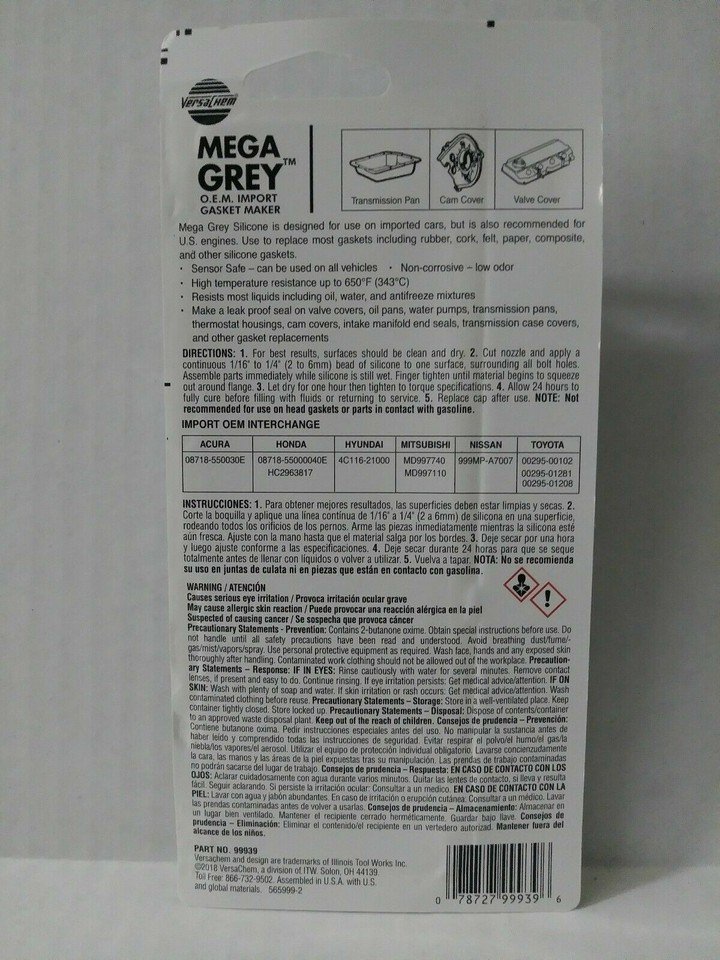 Mega Grey Silicone Gasket Maker VersaChem 3 oz O.E.M Import Sensor Safe OEM