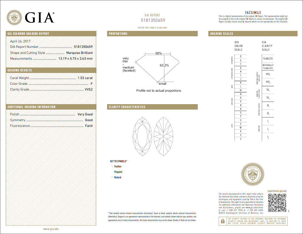 1.53 Karat Lose F/VVS2 Marquise Schliff Diamant GIA Zertifiziert