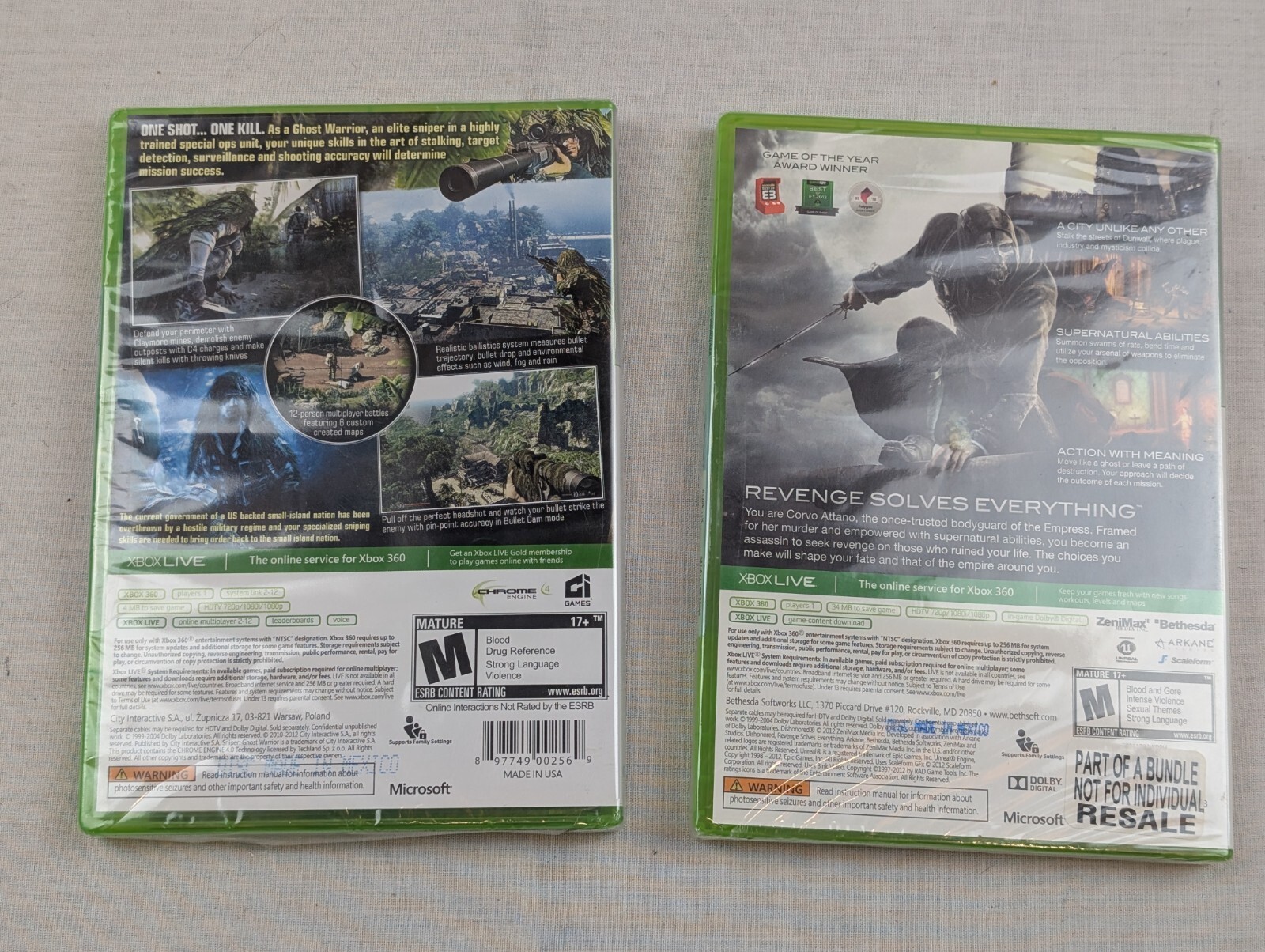 Up for sale is a lot of 2 Brand New Factory Sealed Microsoft Xbox 360 games: Sniper: Ghost Warrior Dishonored