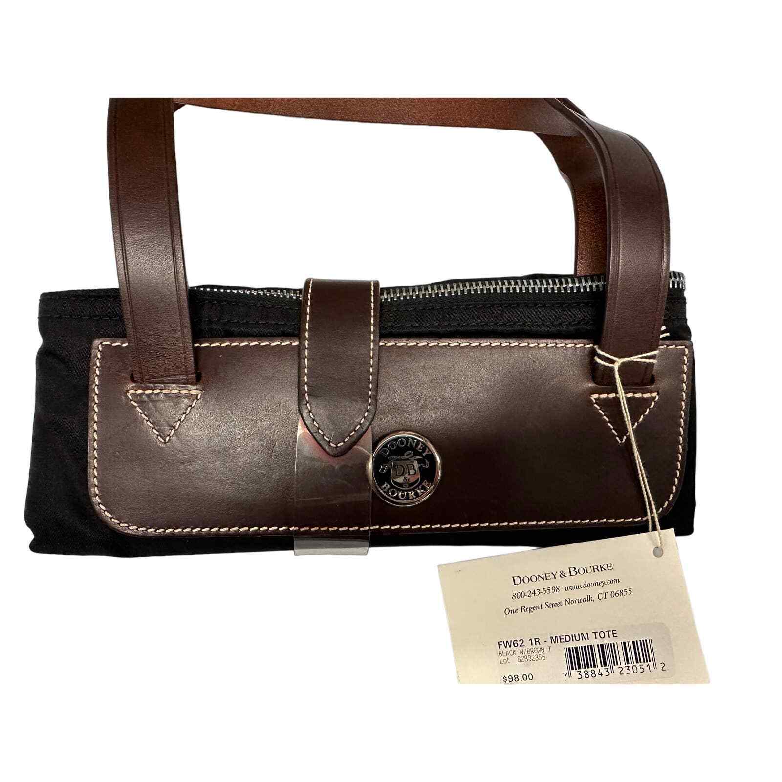 Vintage DOONEY BOURKE black with brown medium tote- the tote part is microfiber, but the brown is all leather and still has original tags and packaging.