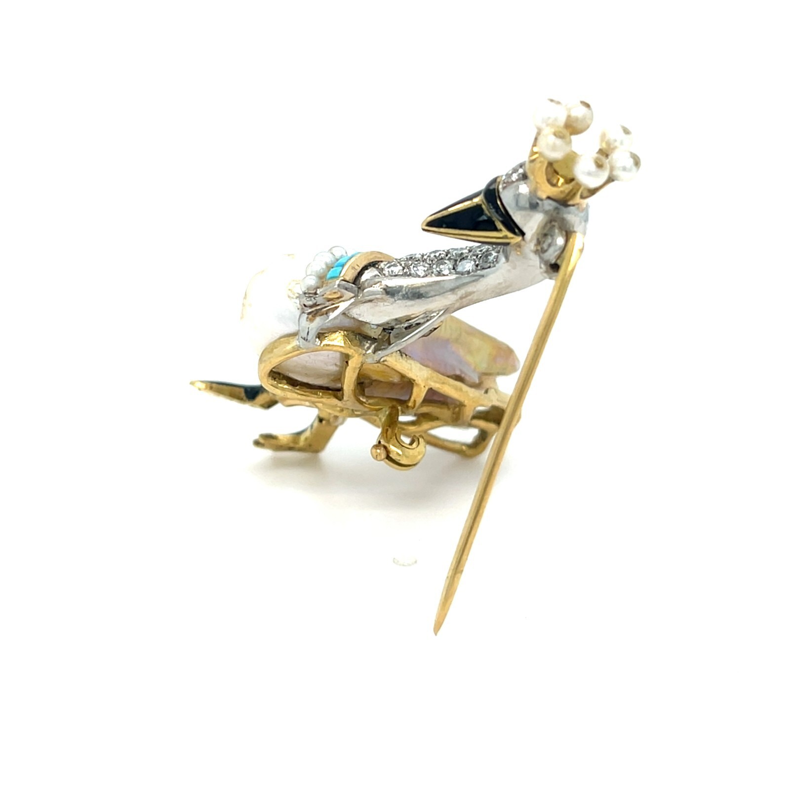 14k Zwei Ton Gold Süßwasserperle Schwan Brosche W/Diamanten Facs Pearl Report