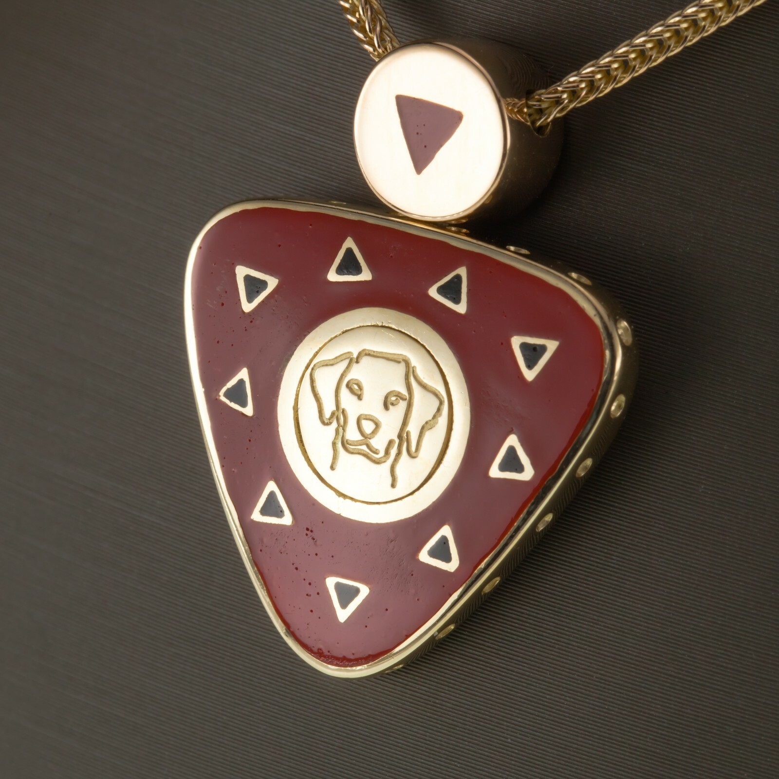 Beinhaltet einen reversiblen dreieckigen Anhanger mit Goldweizenkette