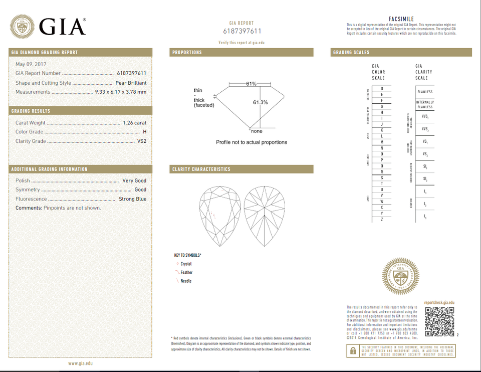 Authenticity Guarantee 1.26 Carat Loose H / VS2 Pear Shaped Cut Diamond GIA ...