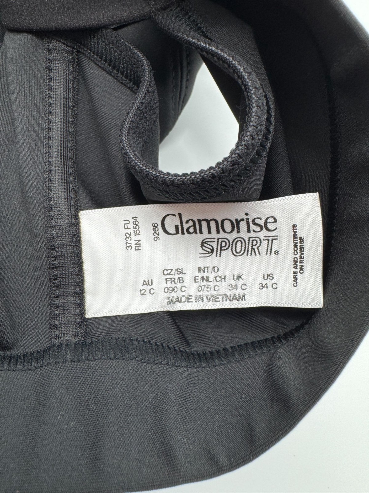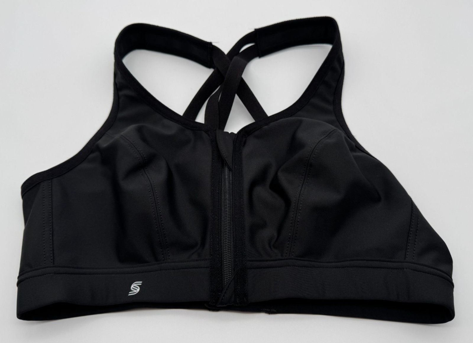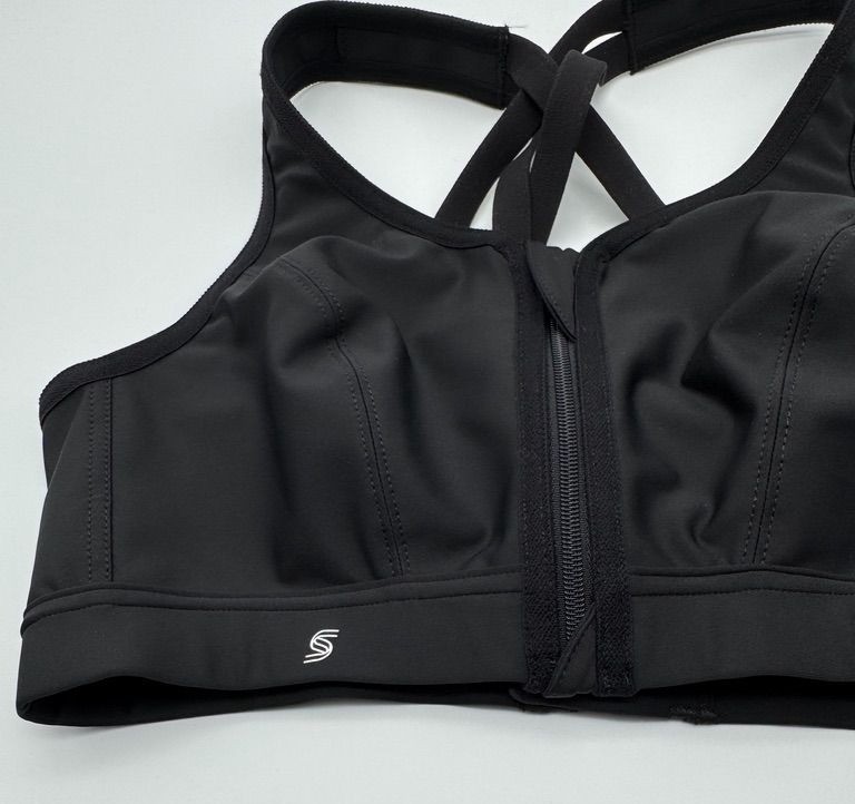 Glamorise Sport Zip Up Front Closure Sports Bra 9266 Black Wireless Strappy 34C