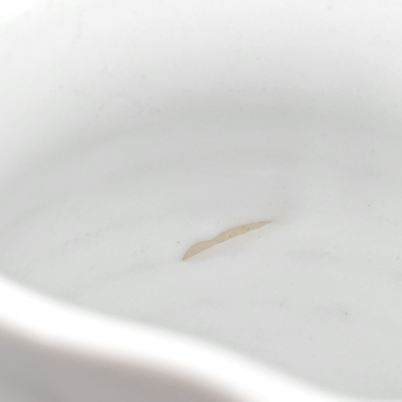 The spot on the inside of the creamer is a slip glaze, which is where the glazing did not fully cover