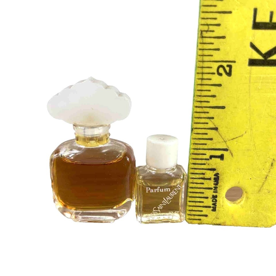 This Vintage Mini Perfume Lot includes two travel-sized bottles of iconic fragrances. The first is Estee Lauder Cinnabar, a rich, spicy fragrance that blends warm and sensual notes, creating a timeless scent. The second is Yves Saint Laurent 'Y' Pure Parfum, a sophisticated blend of floral and woody accords that embodies elegance and modernity. Both bottles are in New Old Stock (NOS) condition, meaning they are unused and in excellent shape. The travel size makes them perfect for on-the-go use or as collectible items. These perfumes are discontinued and highly sought after by collectors, offering an opportunity to own a piece of fragrance history. The combination of these two beloved scents makes this lot ideal for perfume collectors, enthusiasts, or anyone looking to add vintage fragrances to their collection.