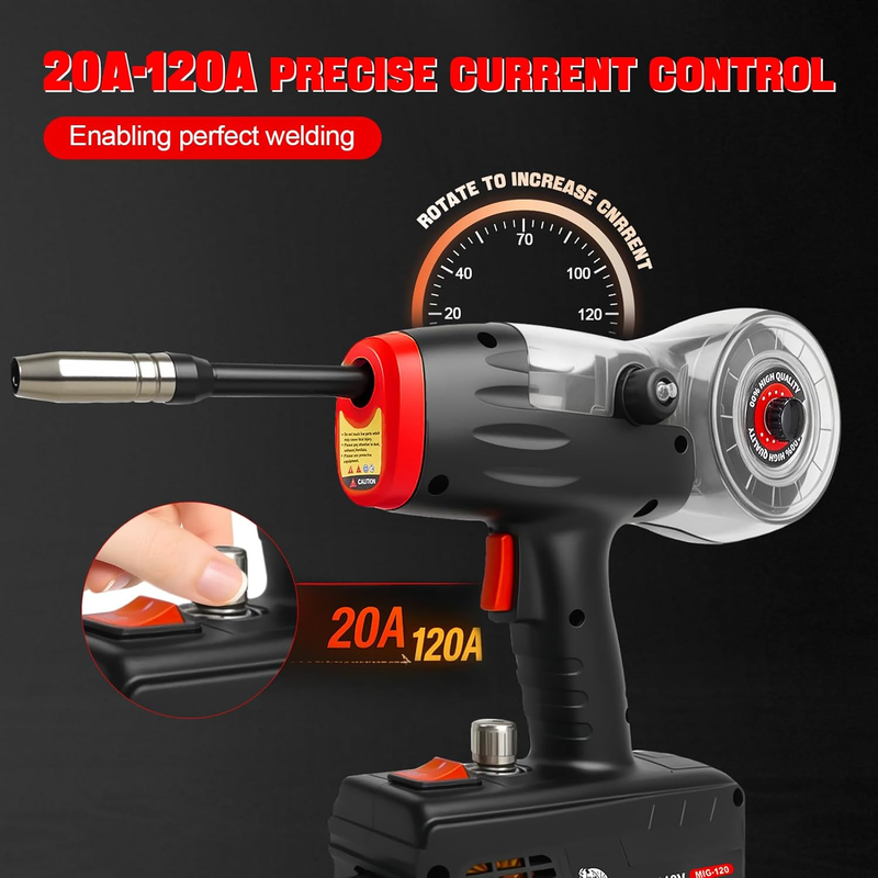?High Power, Wide Current Range?Advanced IGBT inverter with easy knob control delivers 20A?120A precise adjustment. Suitable for stainless steel, carbon steel, galvanized steel, and iron. Delivers the power of a large welder in a compact, portable design.