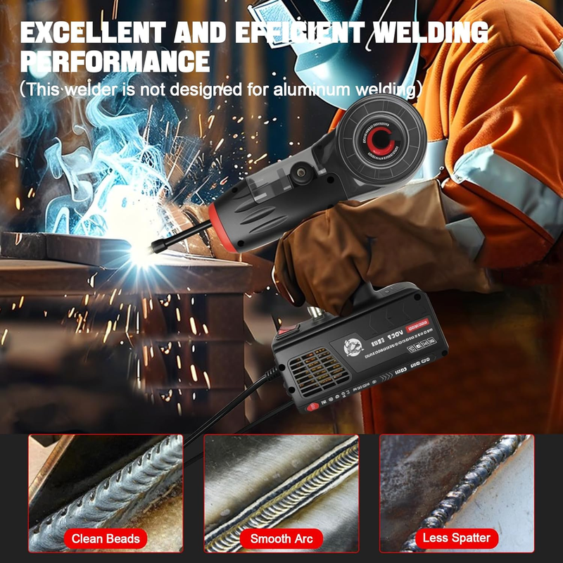 ?Wire Compatibility?Gasless portable MIG welding machine supports 0.03"/0.04" flux-core wire. While reducing usage costs and simplifying operations. Stable wire feed ensures low spatter, smooth welds, and professional results for all skill levels.