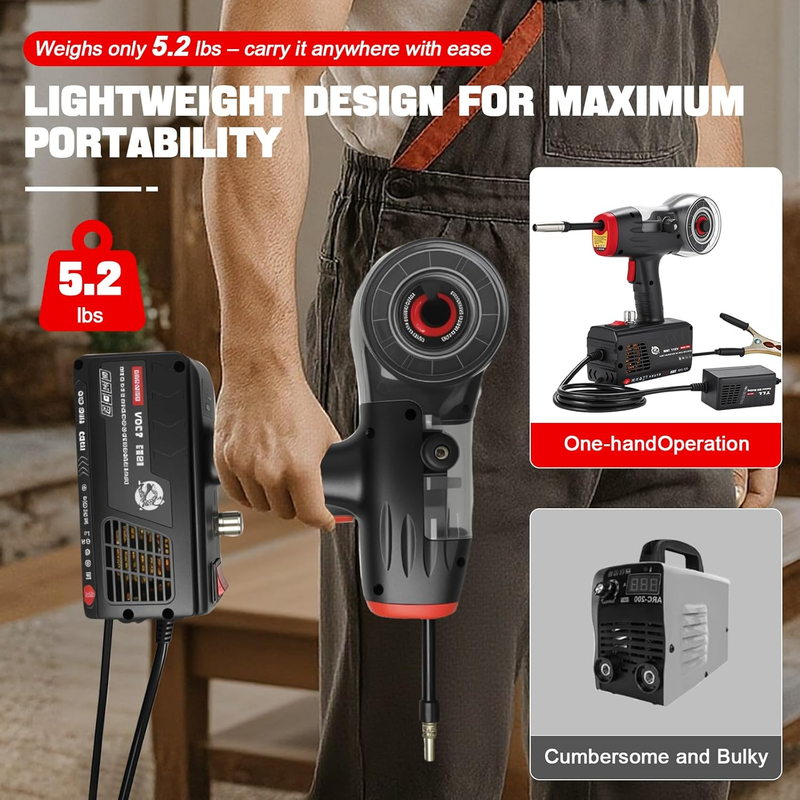 ?Ultra-Light Compact Design?Weighing only 5.2 lbs this MIG welder is lighter than a laptop. Ergonomic pistol grip allows one-handed operation, making it perfect for tight spaces and outdoor use.