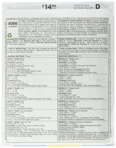 McCall's Patterns M4066 18-Inch Doll Clothes, One Size Only