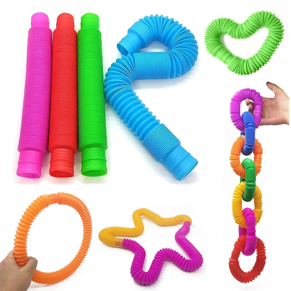 10x Fidget Pop Tube Toys for Kids Adults Stretch Pipe Sensory Tool Stress Relief