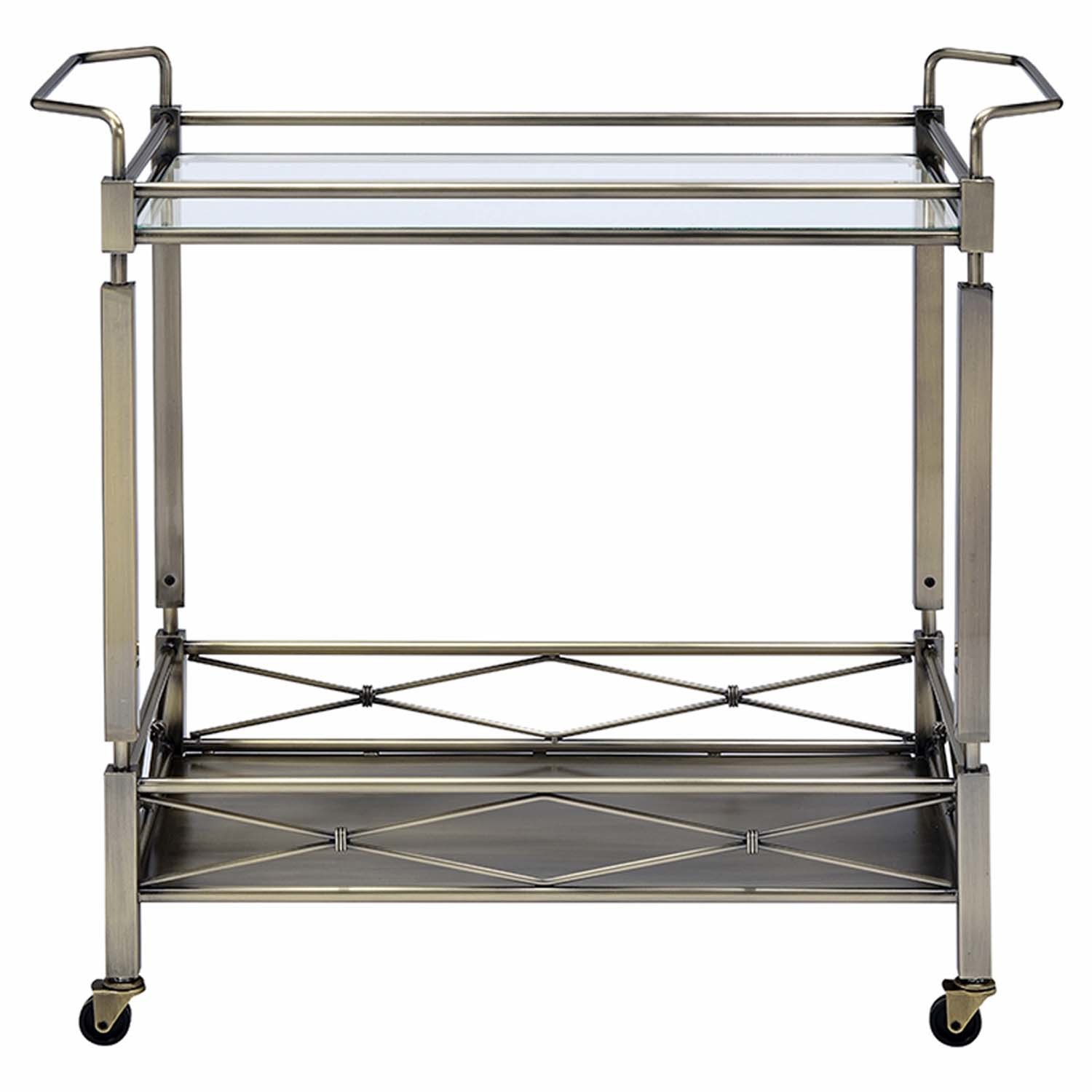 Add a touch of sophistication to your entertaining area with this Matiesen serving cart. With metal in antique brass finish, and clear tempered glass on the top shelf. The caster wheels allow you to move from room to room effortlessly. Simple and elegant, this serving cart will be a great addition in your place.