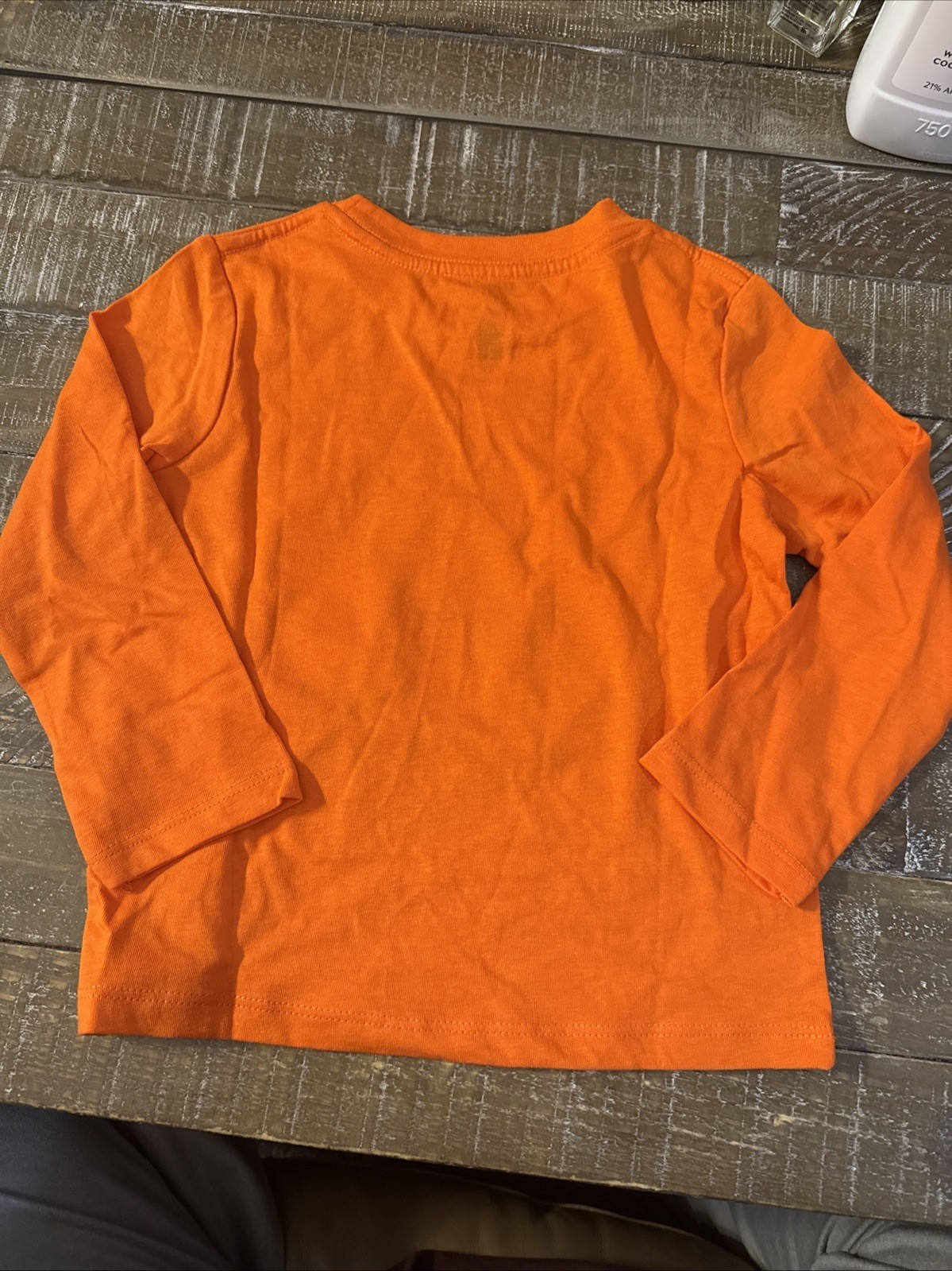 The Tiny Terror Halloween Shirt in size 2T is a cute and festive T-shirt designed for baby and toddler boys and girls. The shirt features the brand's logo and showcases a Halloween theme, making it perfect for the Halloween season. The vibrant orange color adds a fun and spooky touch to the outfit, while the high-quality material ensures comfort and durability for your little one. Dress up your child in this adorable Halloween shirt for a fun and stylish look.