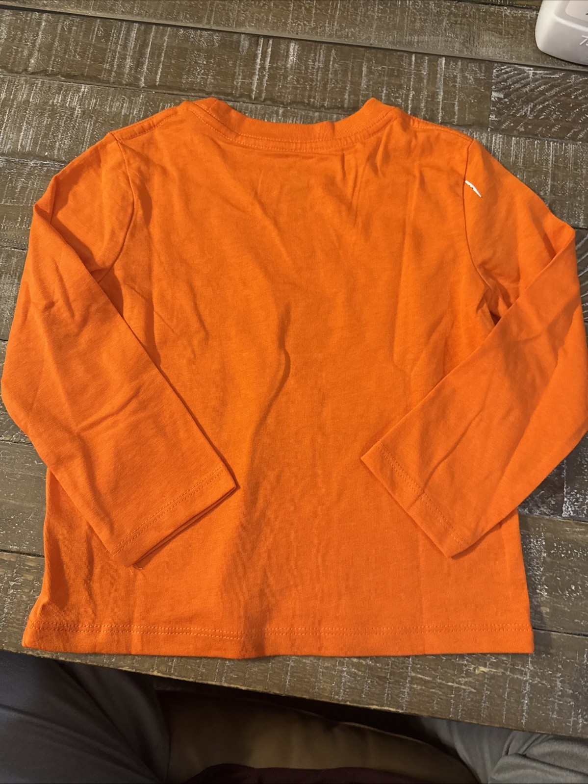 The Tiny Terror Halloween shirt in size 24 months is a vibrant orange t-shirt featuring a Halloween theme, perfect for dressing up your little one in a festive and spooky outfit. With a cute and playful design, this shirt is great for adding a touch of Halloween fun to your child's wardrobe. Made by the brand Tiny, this shirt is ideal for both baby boys and girls in the 24-month age group.