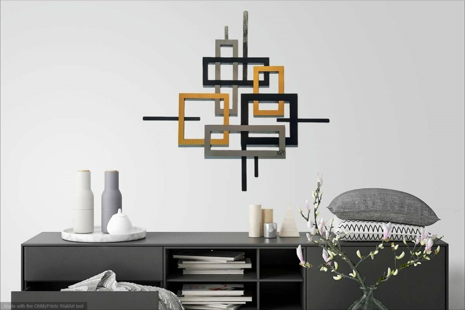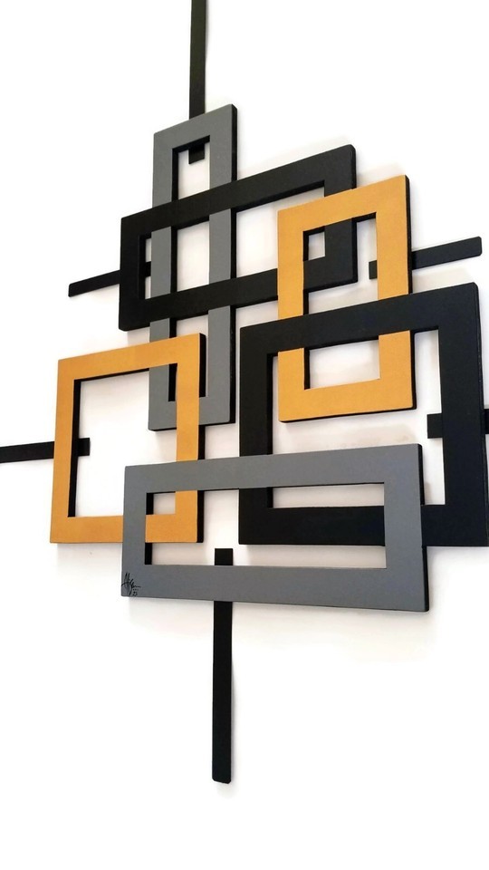Faux Frame design, Geometric Wood and Metal Wall Sculpture