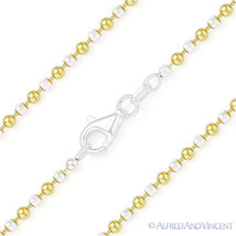 2mm Ball & Faceted Bead Chain Necklace Italy 925 Sterling Silver 14k Yellow Gold