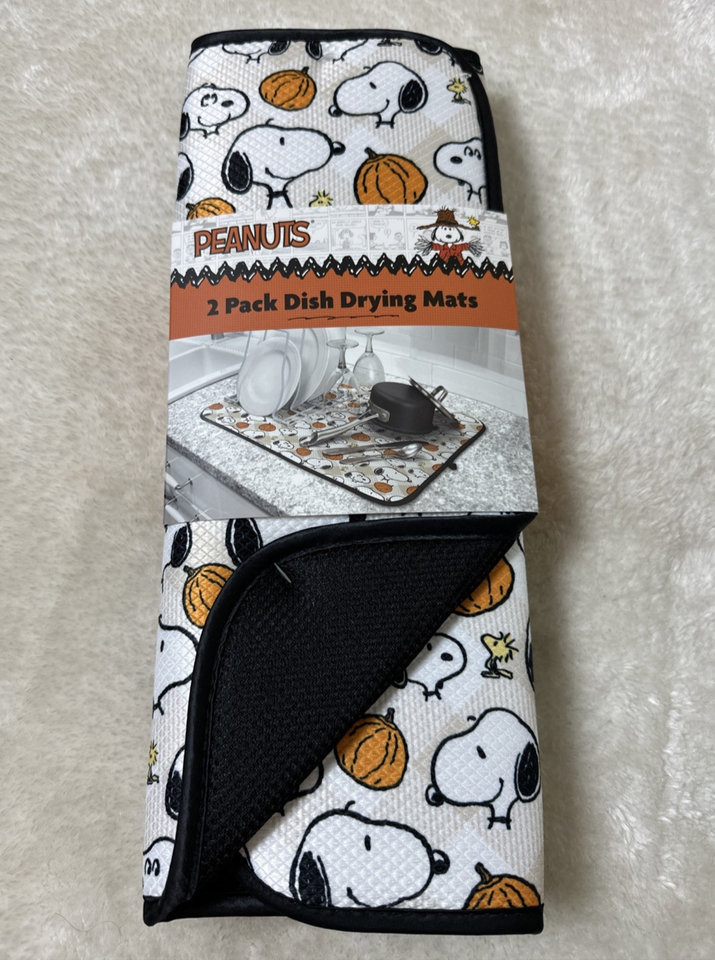 Add a touch of holiday cheer to your kitchen with this new Peanuts Autum Fall Dish Drying Mats featuring Snoopy, Woodstock and Charlie Brown.