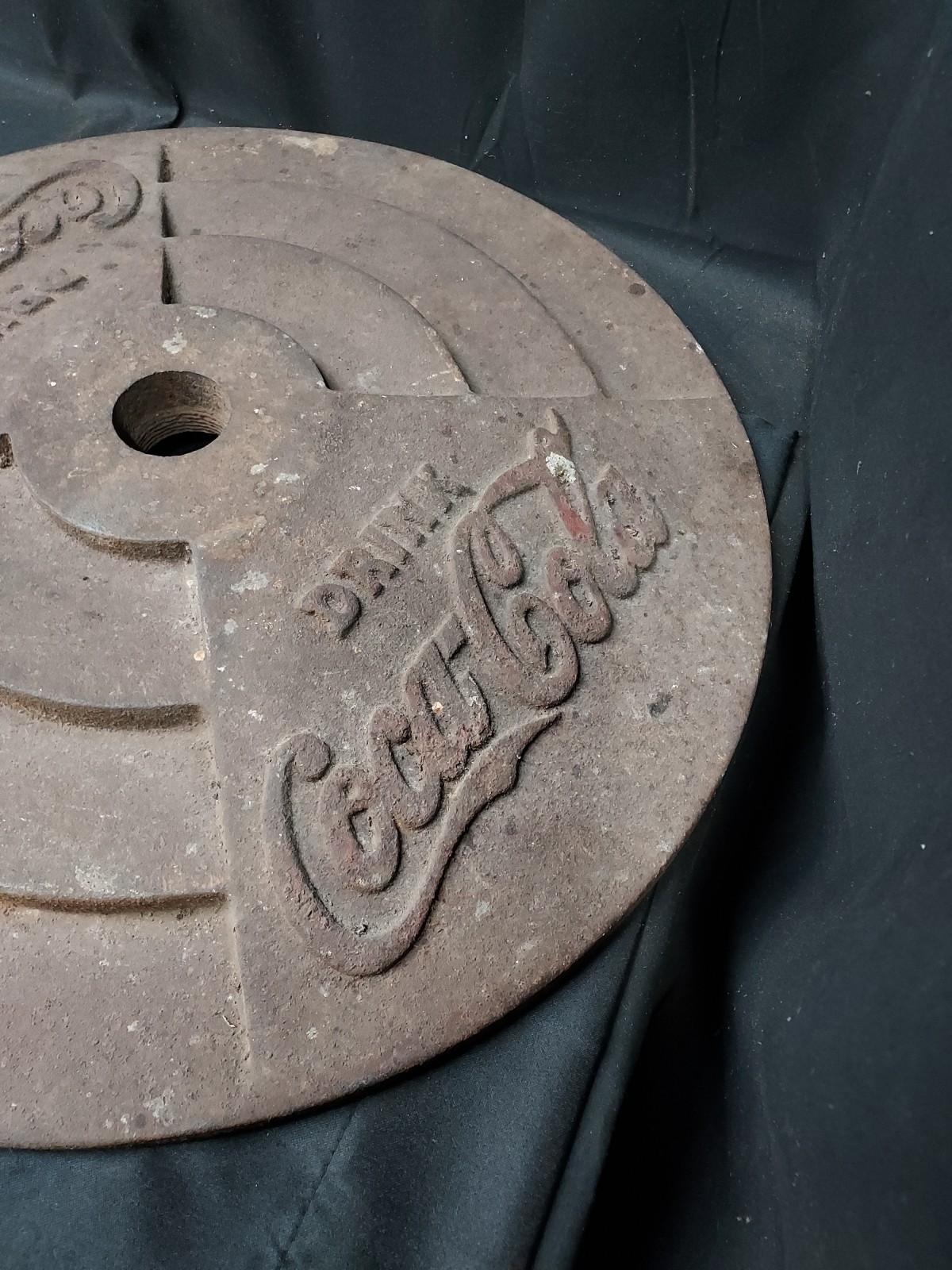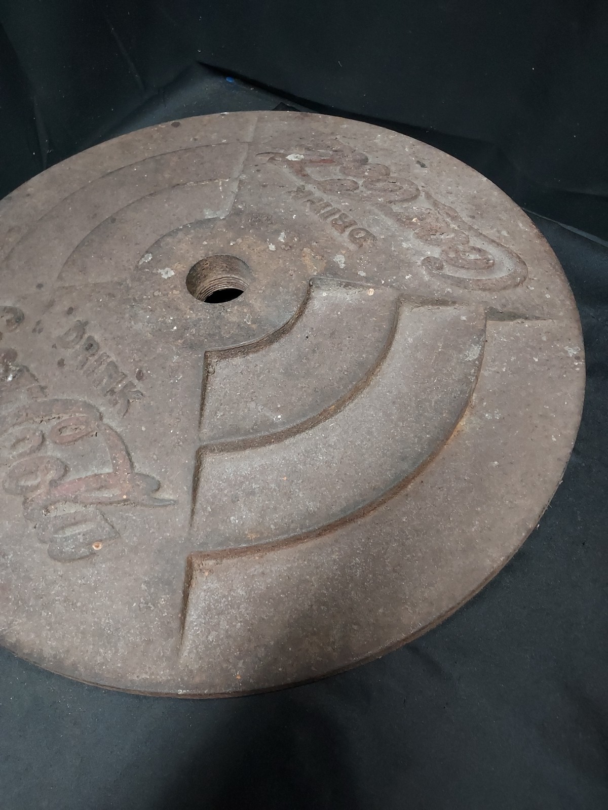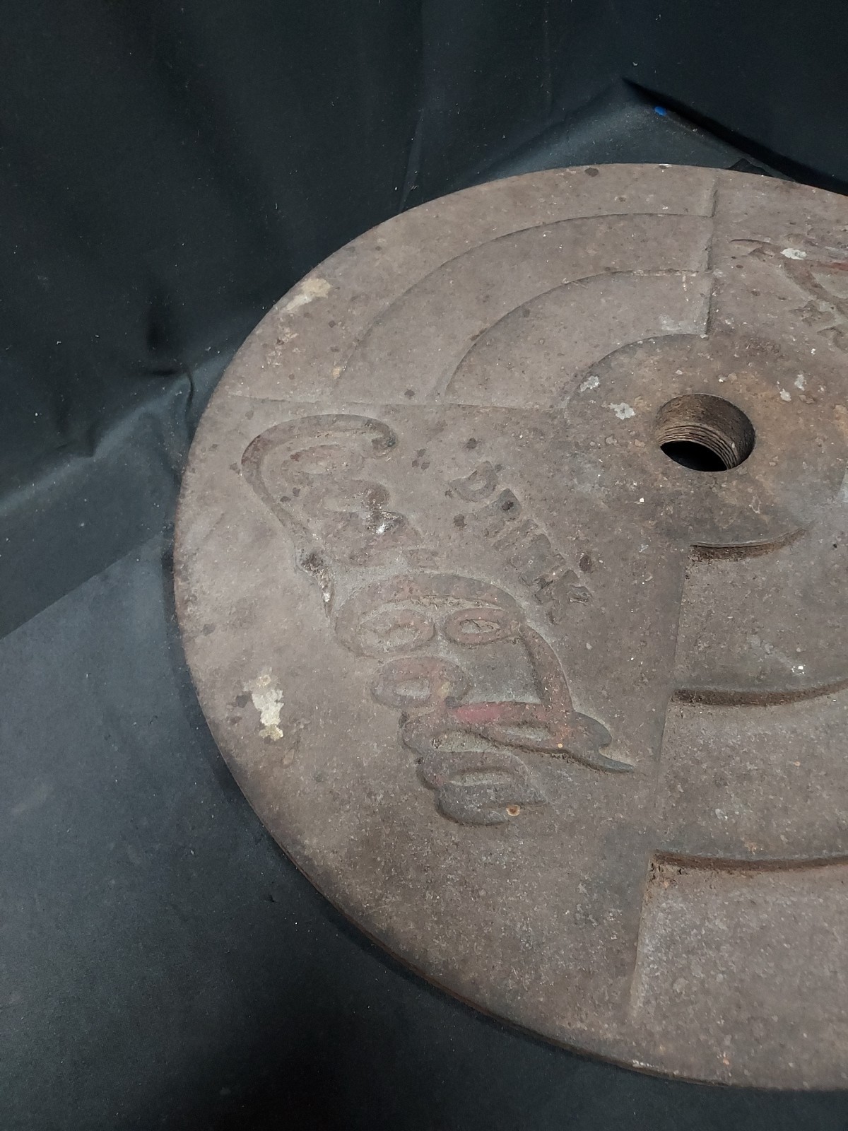 1930s 40s Coca Cola Lollipop Umbrella Sign Stand Base Cast Iron Heavy Coke Soda