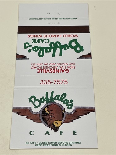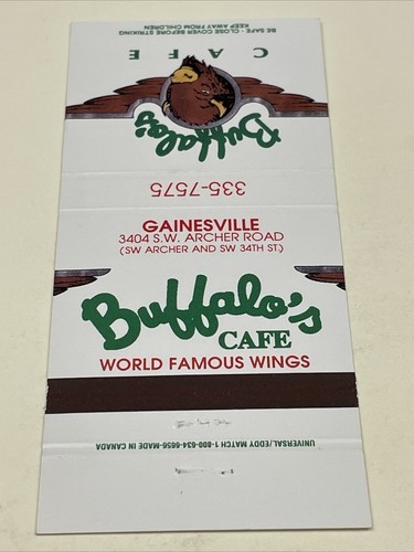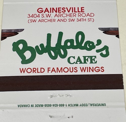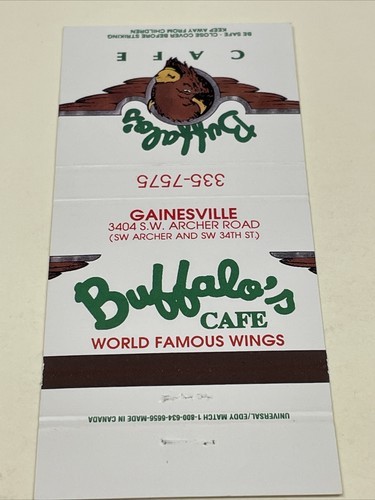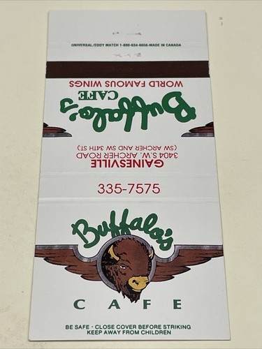 Matchbook Covers Buffalo’s Cafe World Famous Wings Gainesville, FL 30 Locations