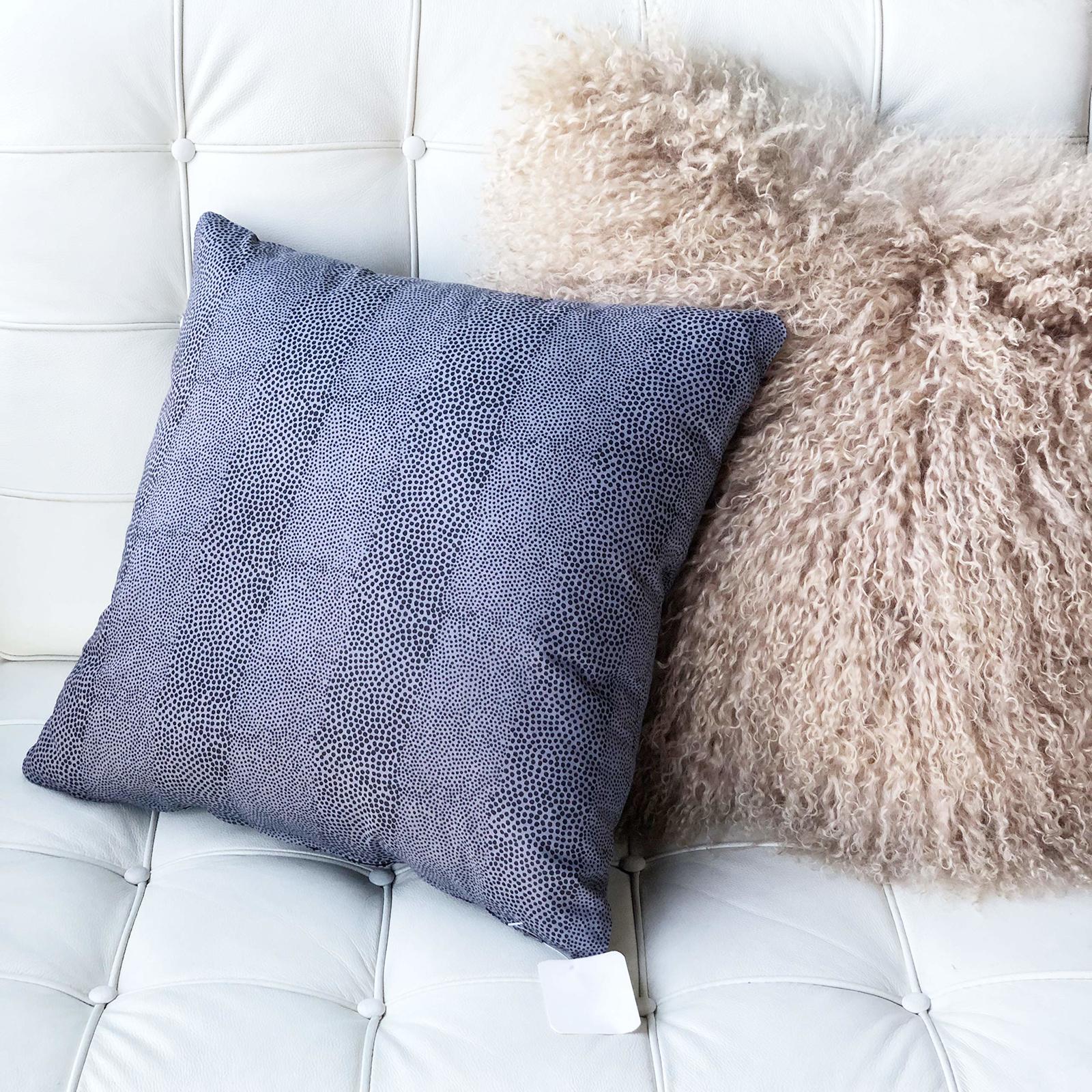 Bands of black dots in varying sizes on a charcoal gray background form the pattern in this cobra print pillow. Made from 100% cotton.