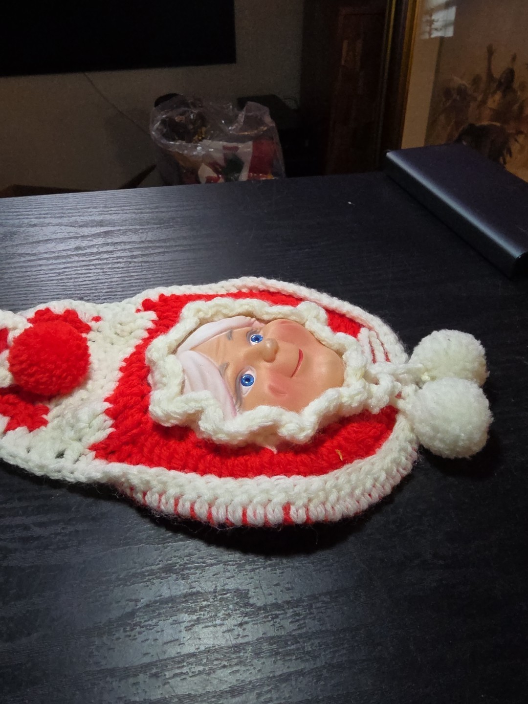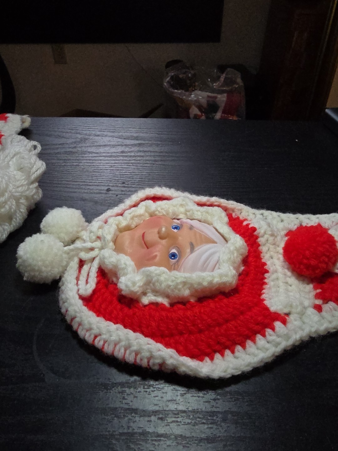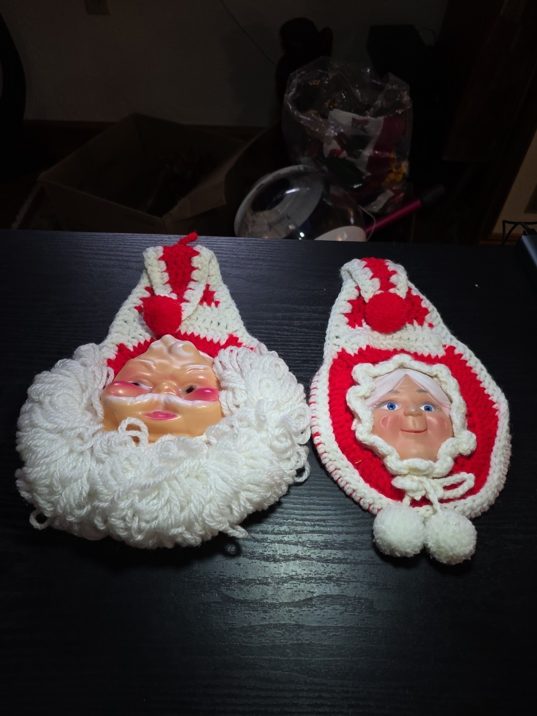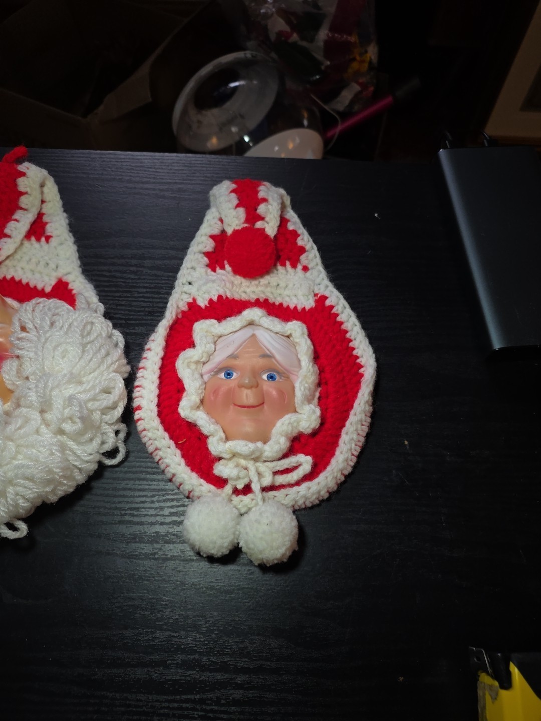 *Read Vintage Crocheted Mr. and Mrs. Santa Claus Plastic Faces Christmas Decor