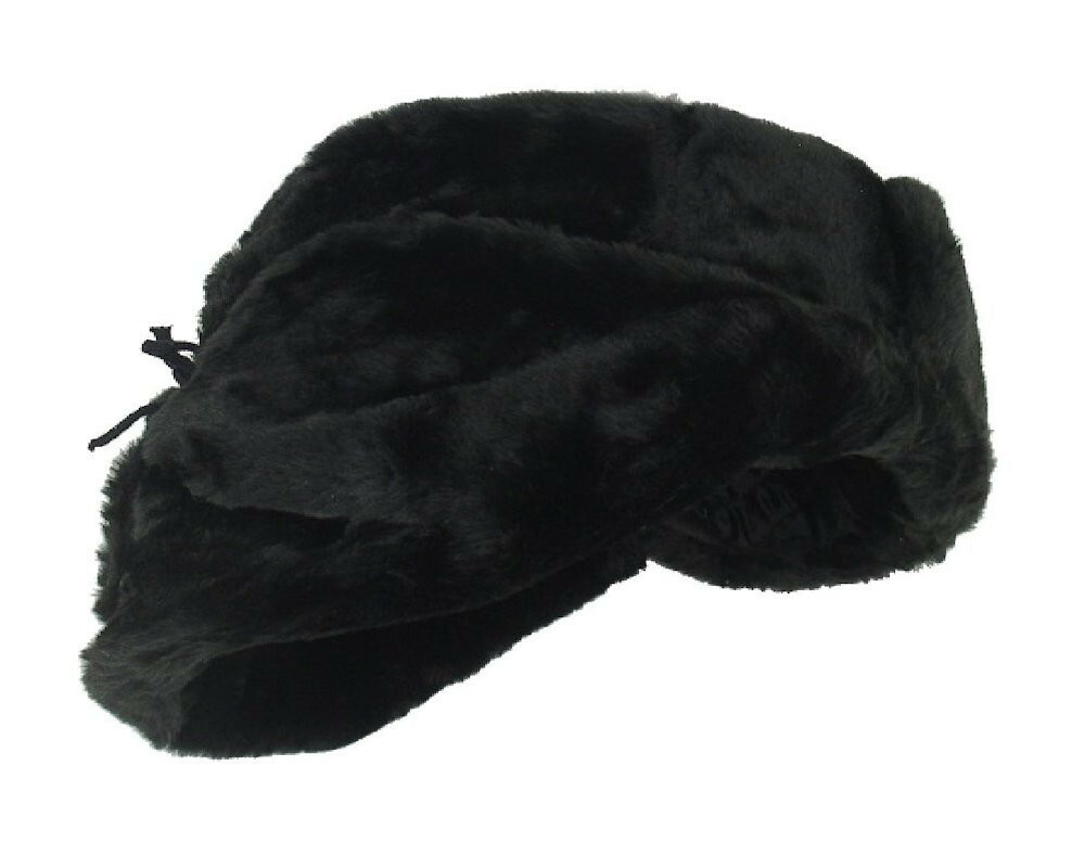 Authentic Russian Military Faux Fur Black Ushanka Hat