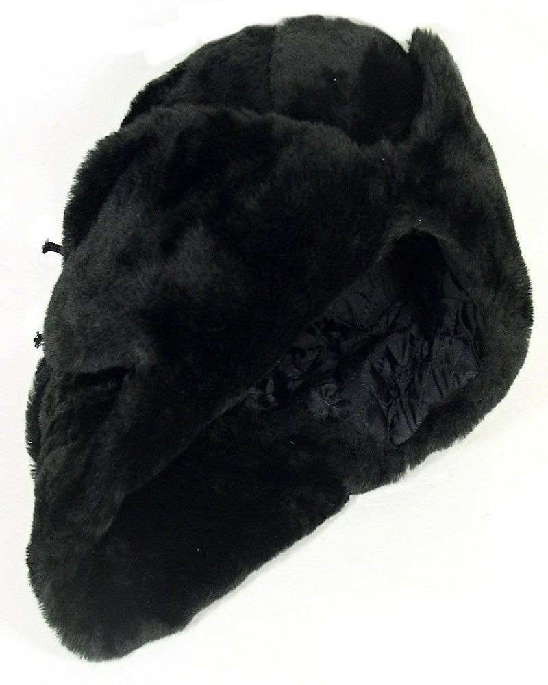 This faux fur hat with ear flaps is a traditional Soviet Army winter hat - warm and cozy, perfect for protecting from Siberian winds and snow storms. It is made of faux fur. This kind of fur has been designed in the Soviet Union specifically for such winter army hats. It is known for its durability and resistance to snow/water. This model is available in sizes S, M, L, XL, XXL. It has a nice quilted lining. Each hat is supplied with a soviet imperial eagle emblem .Should it be necessary, the badge easily comes off leaving no marks on the fur. They may be worn ear flaps up or down. Price is per hat. Materials used are 37% pan, 30% wool, 15% cotton, 13% flax fiber, 5% other fibers. When you wish to wash the hat it should be dry cleaned only. The chart is the same for woman as well.