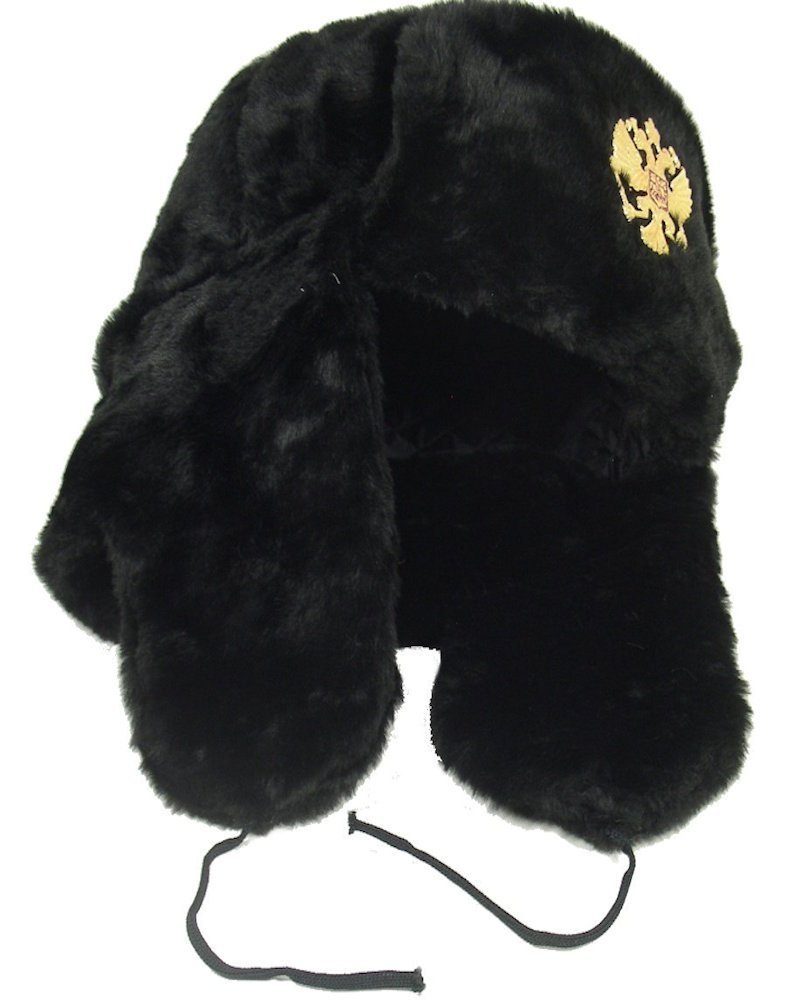 Este sombrero de piel sintetica con aletas de oído es un sombrero de invierno del ejercito sovietico tradicional, calido y acogedor, perfecto para proteger de los vientos siberianos y las tormentas de nieve. Esta hecho de piel sintetica. Este tipo de pelaje ha sido diseñado en la Union Sovietica específicamente para tales sombreros del ejercito de invierno. Es conocido por su durabilidad y resistencia a la nieve/agua. Este modelo esta disponible en tamaños S, M, L, XL, XXL. Tiene un lindo forro acolchado. Cada sombrero se suministra con un emblema de aguila imperial sovietica. Debería ser necesario, la insignia facilmente no se queda sin dejar marcas en el pelaje. Se pueden usar las aletas de la oreja hacia arriba o hacia abajo. El precio es por sombrero. Los materiales utilizados son 37%