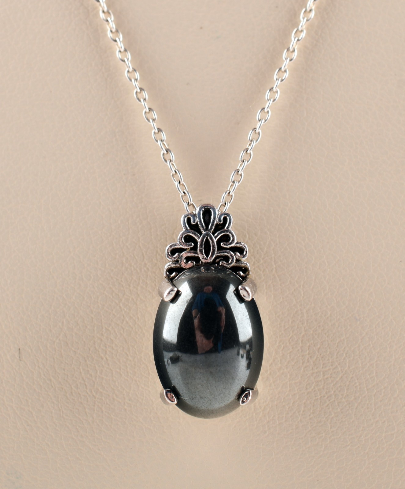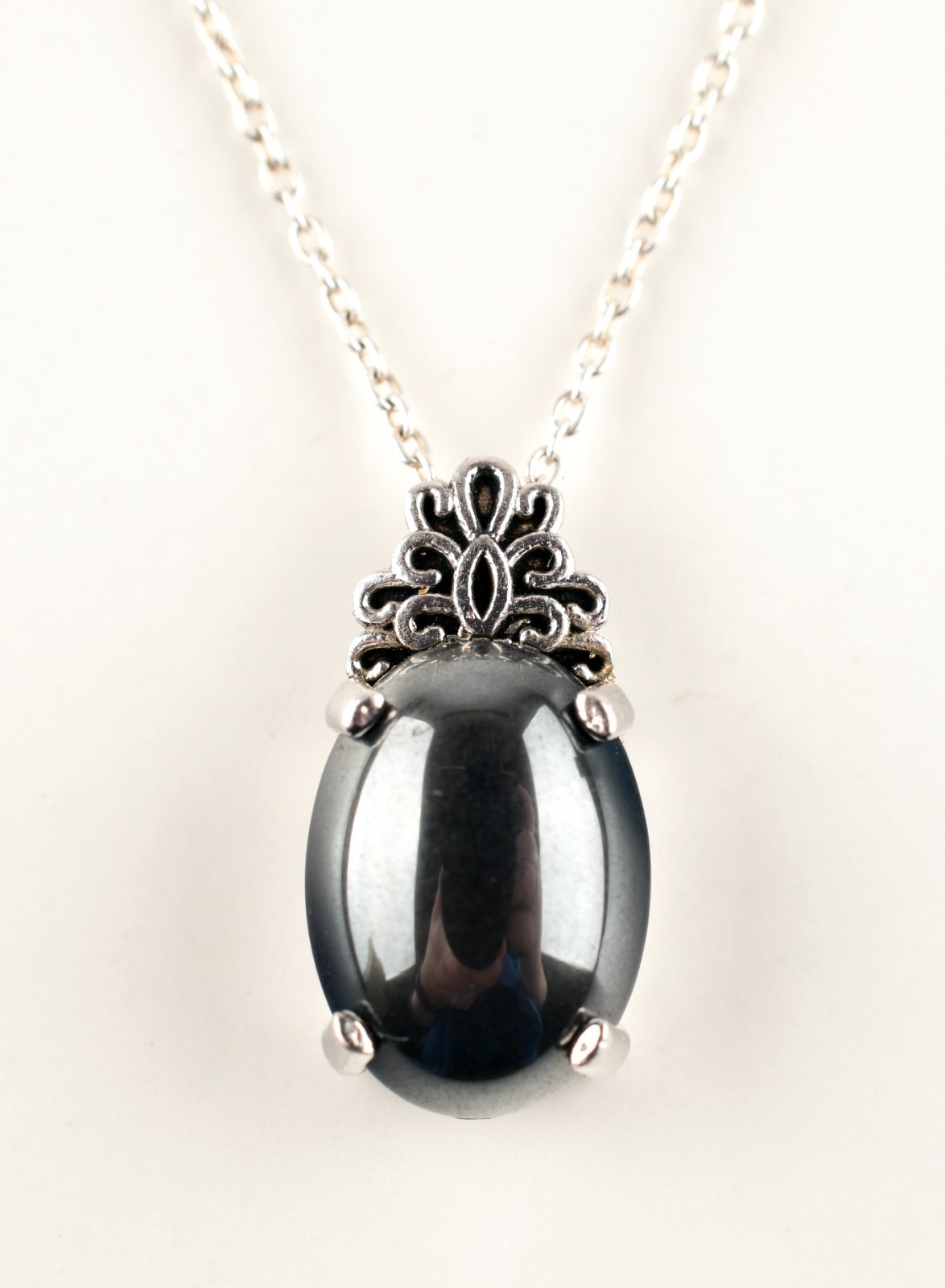 *Sterling Silver Hematite Pendant Necklace 16" Chain