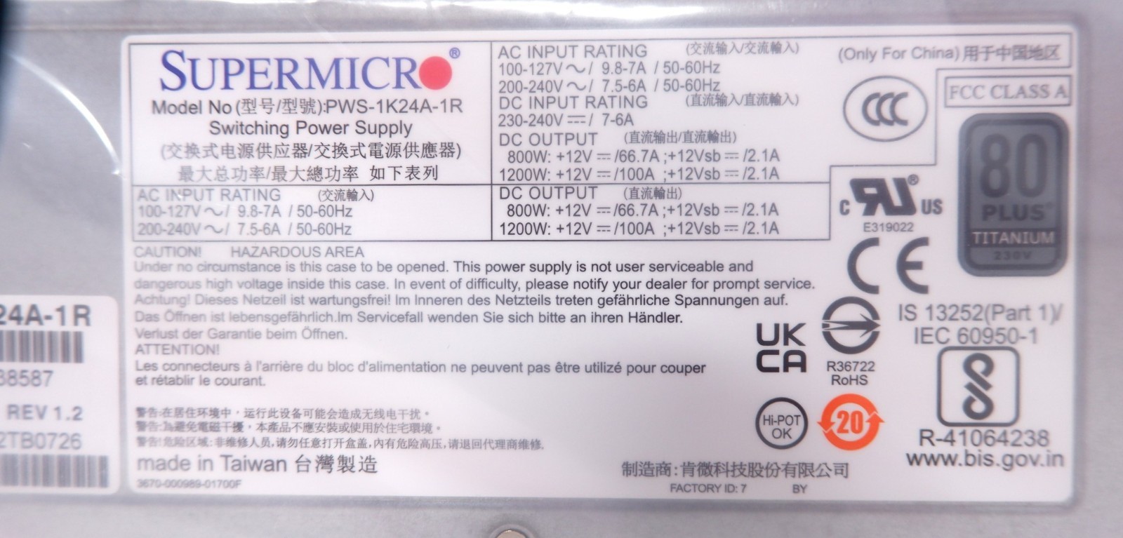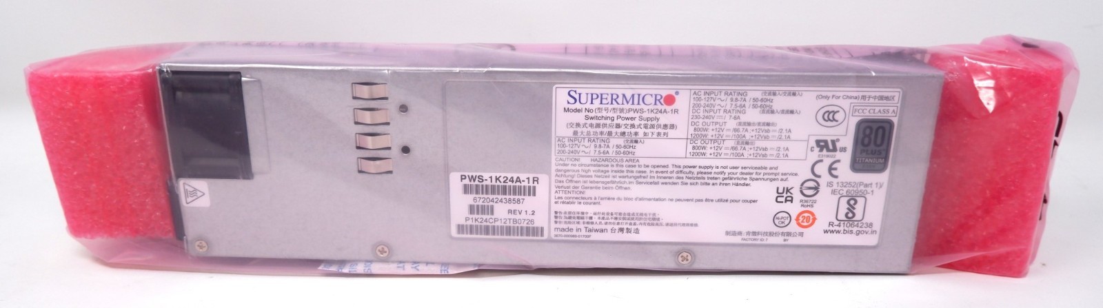SUPERMICRO PWS-1K24A-1R 800/1200W 80+ TITANIUM 100-240V 1U POWER SUPPLY PSU, NEW