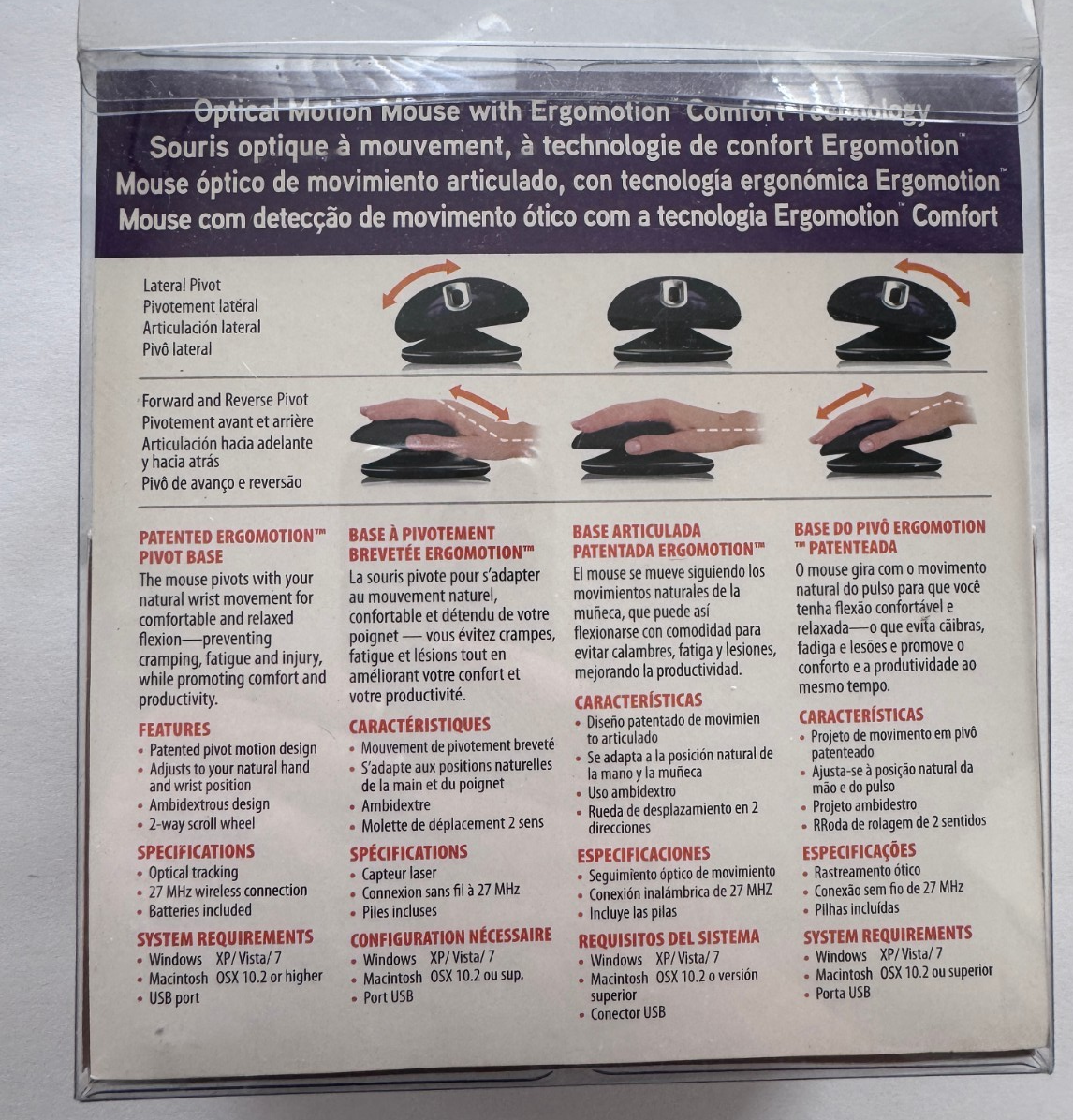 Ergomotion Optical Motion Mouse Maxell Mini Transceiver PURPLE NEW