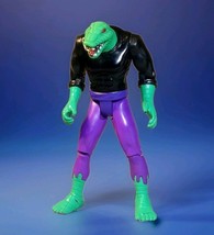 The Vintage 1994 Marvel Spider-Man 5" Inch LIZARD Toy Biz Action Figure is a collectible item featuring the character of Lizard from the Spider-Man franchise. This action figure stands at 5 inches tall, made of hard plastic, and comes in black, purple, and green colors. Although it is missing its jacket and tail, it is still a sought-after piece for fans of Spider-Man and action figures from the 1990s. The vintage nature of this toy adds to its appeal for collectors interested in comic book heroes and nostalgia from that era.
