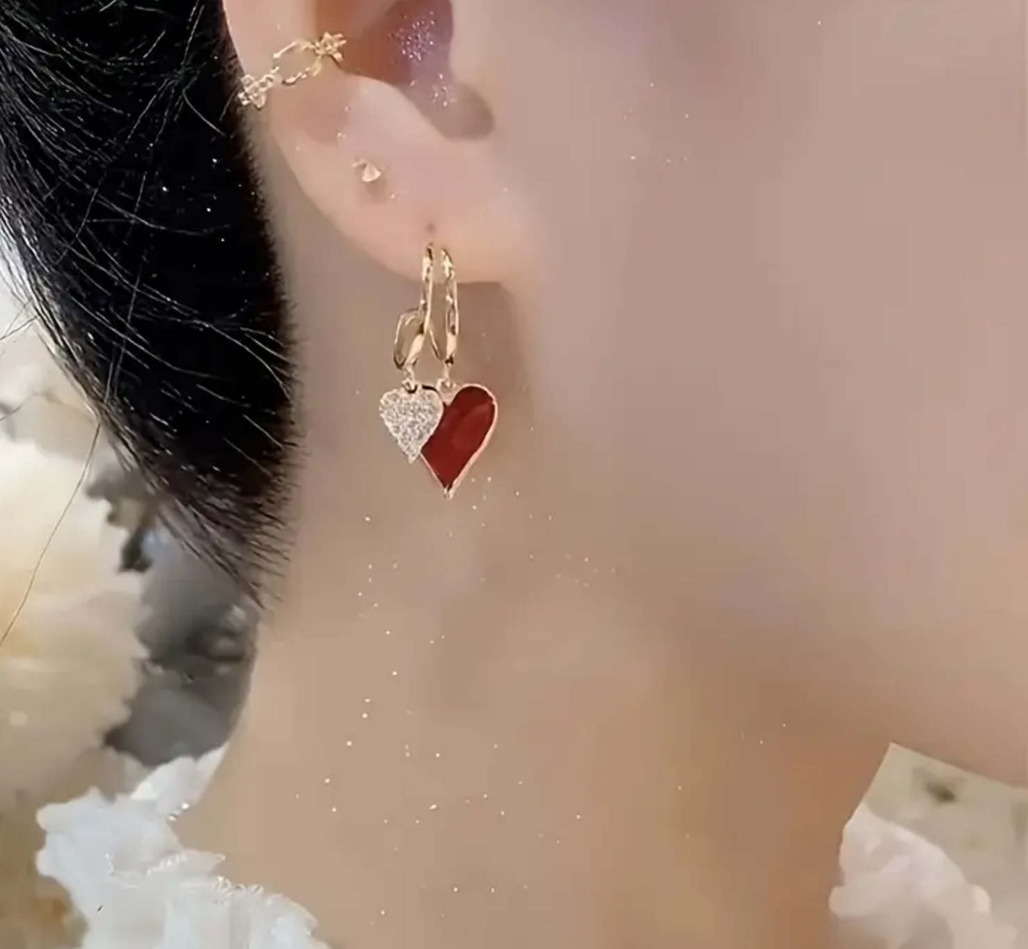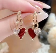 Womens 18k Gold Plated Hoop Earrings Crystal Drop Dangle Fashion Heart Earrings