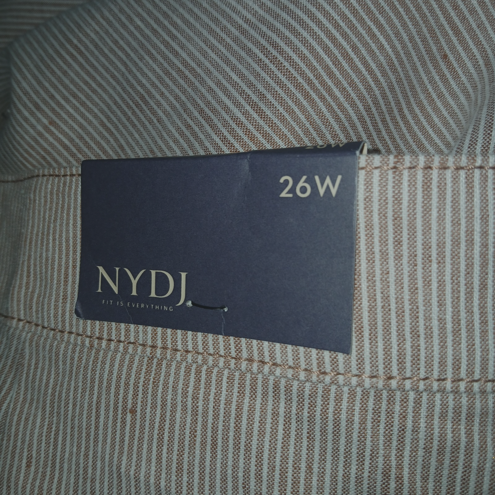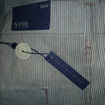 NYDJ LIFE TUCK TECHNOLOGY LIGHT BROWN/WHITE PINSTRIPE PANTS-26W-NWT-POCKETS