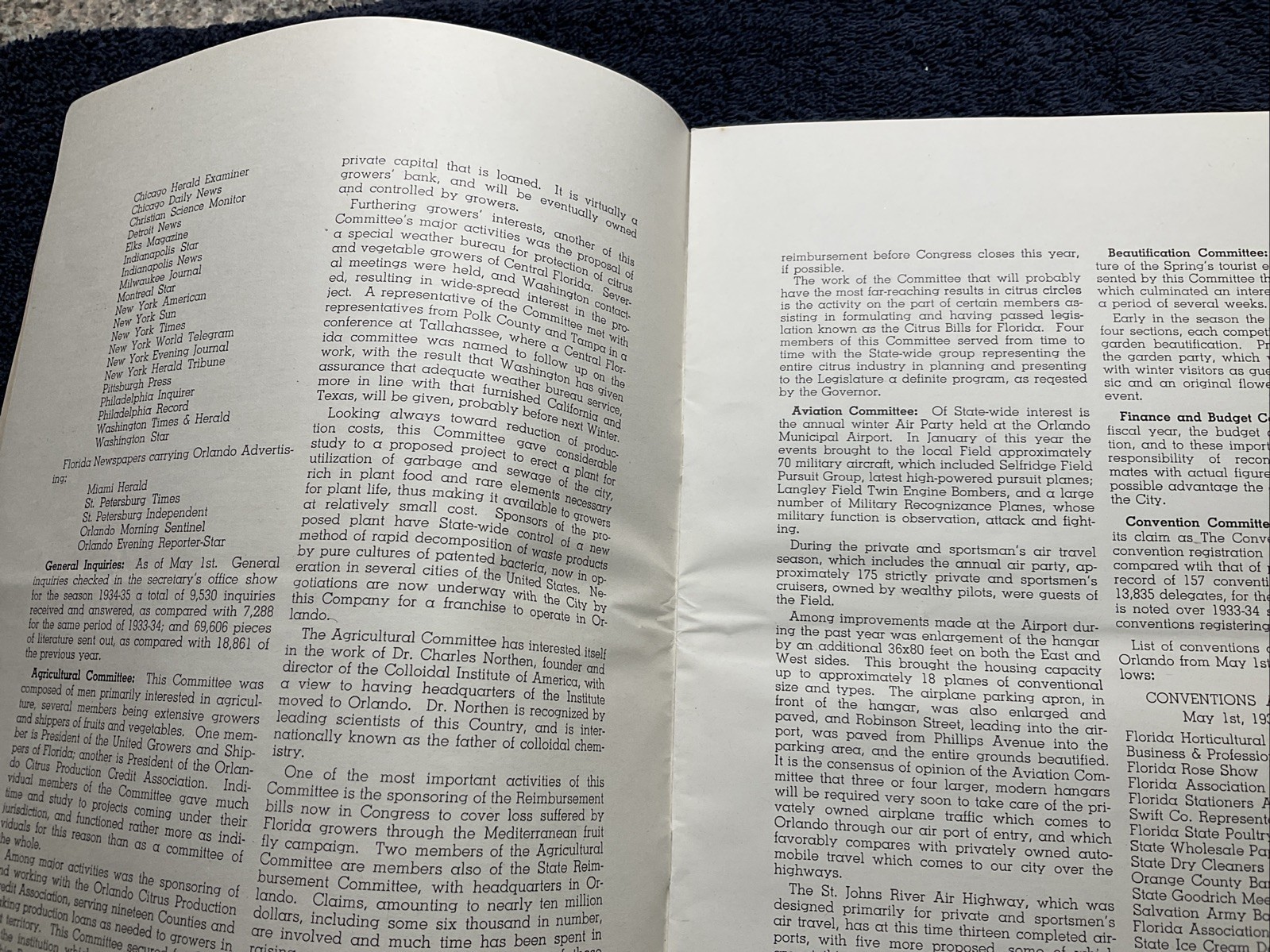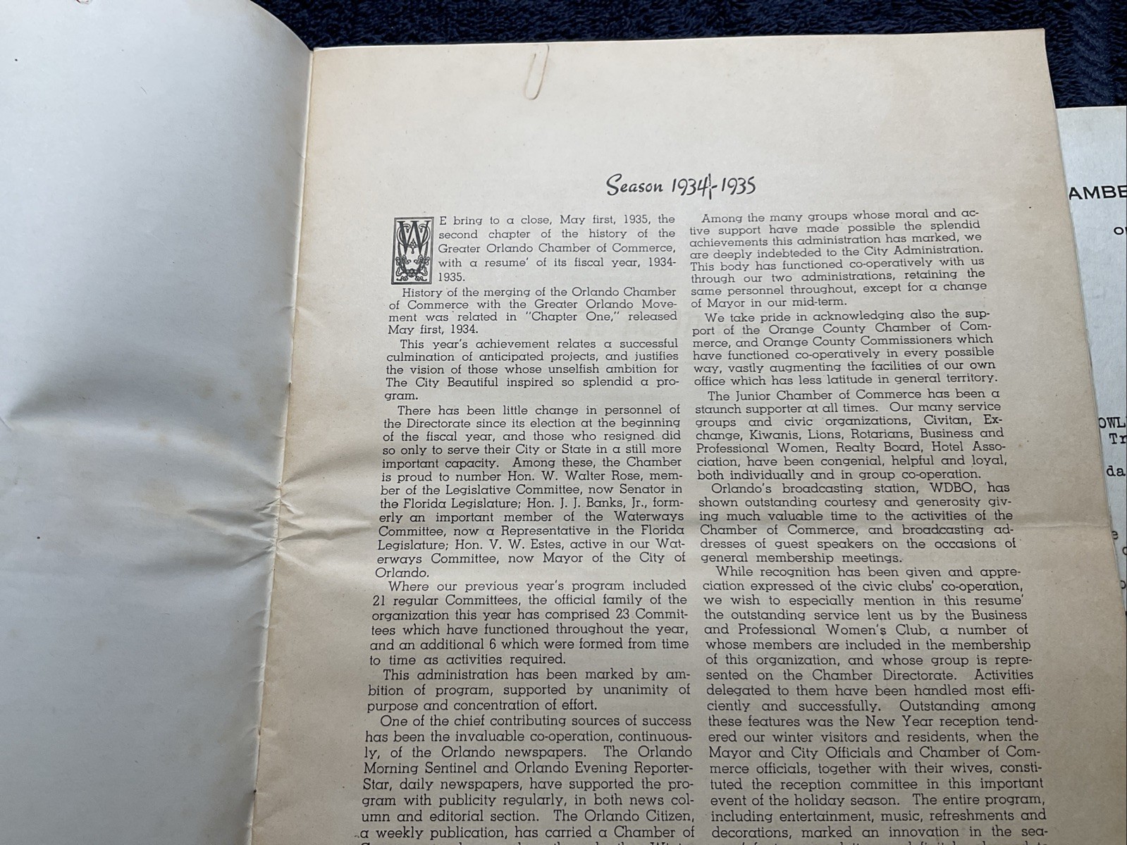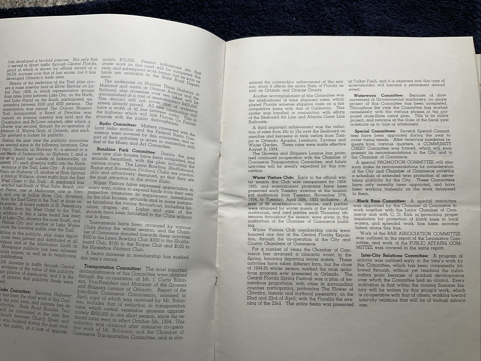 ORLANDO CHAMBER OF COMMERCE SEASON 1934-35 ANNUAL REPORT - VINTAGE PRE DISNEY