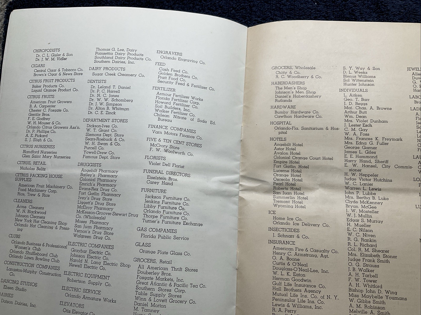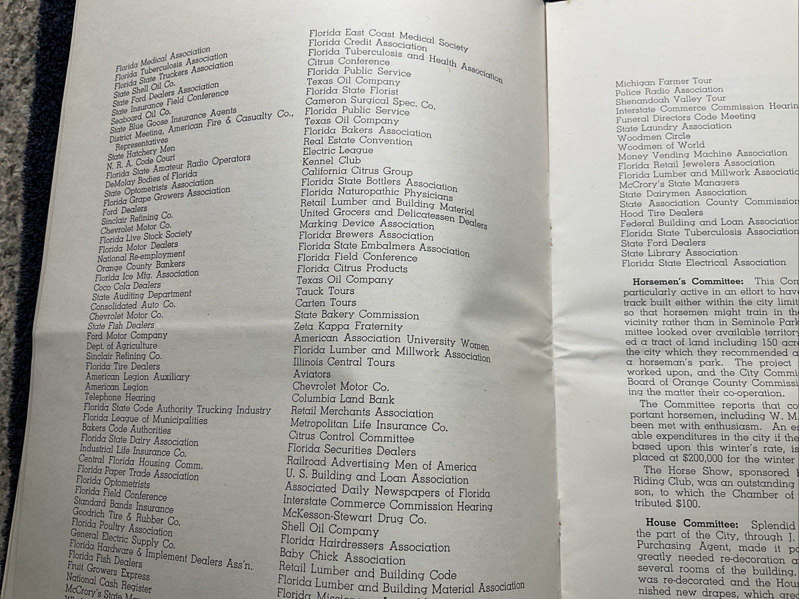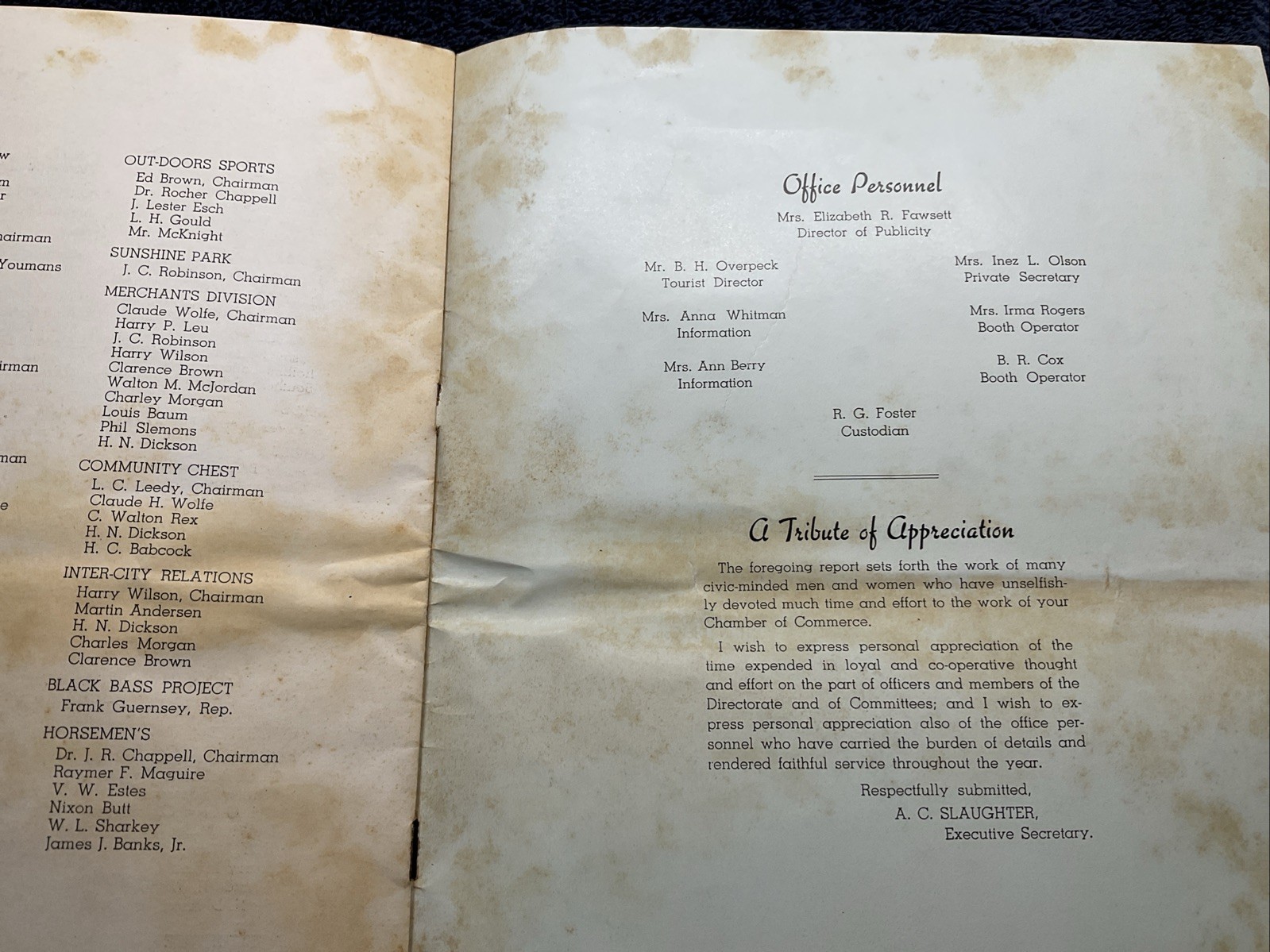 ORLANDO CHAMBER OF COMMERCE SEASON 1934-35 ANNUAL REPORT - VINTAGE PRE DISNEY