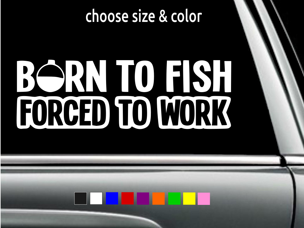 BORN TO FISH FORCED TO WORK Vinyl Decal Wall Truck Sticker CHOOSE SIZE COLOR