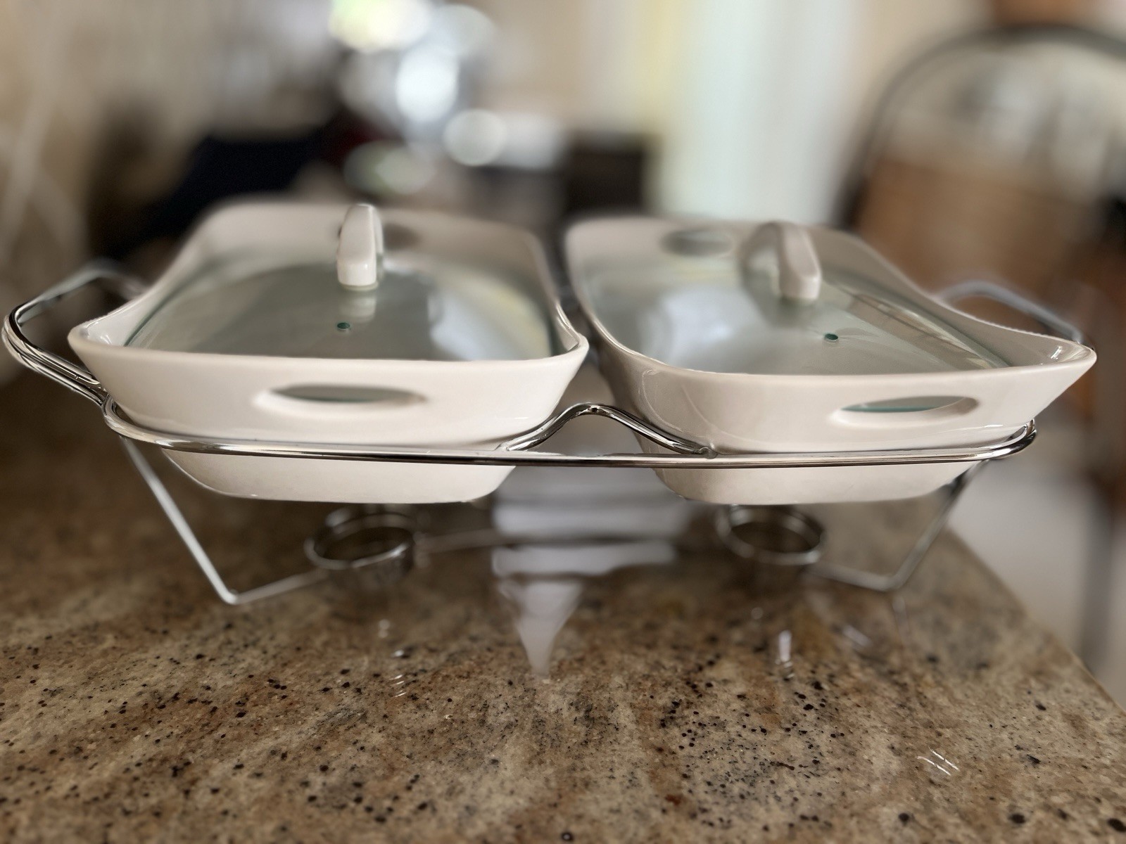 B Smith New 2 Cup Twin Casserole Dishes With Covers Oven To Table With Tea Light