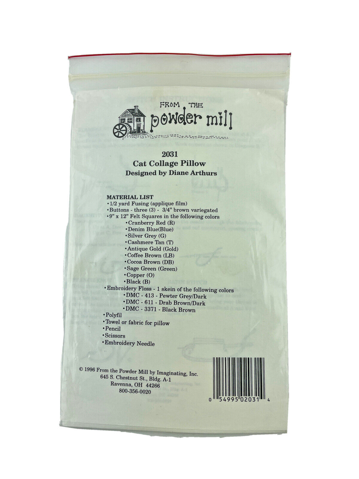 The Powder Mill Cat Collage Pillow Pattern 2031 by Diane Arthurs
