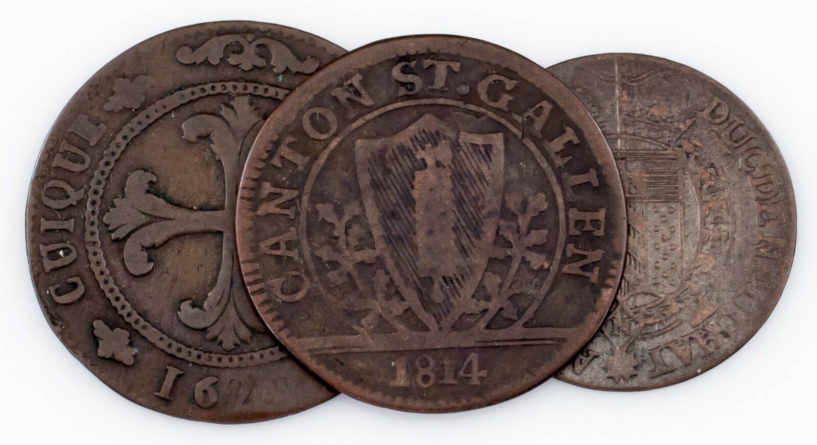 1791-1814 Suisse Cantons Pièce de Monnaie Lot (3pcs) 4 Kreuzer À 1 Batzen (VF)