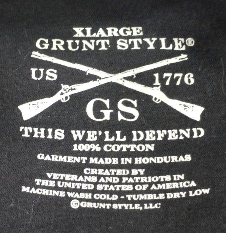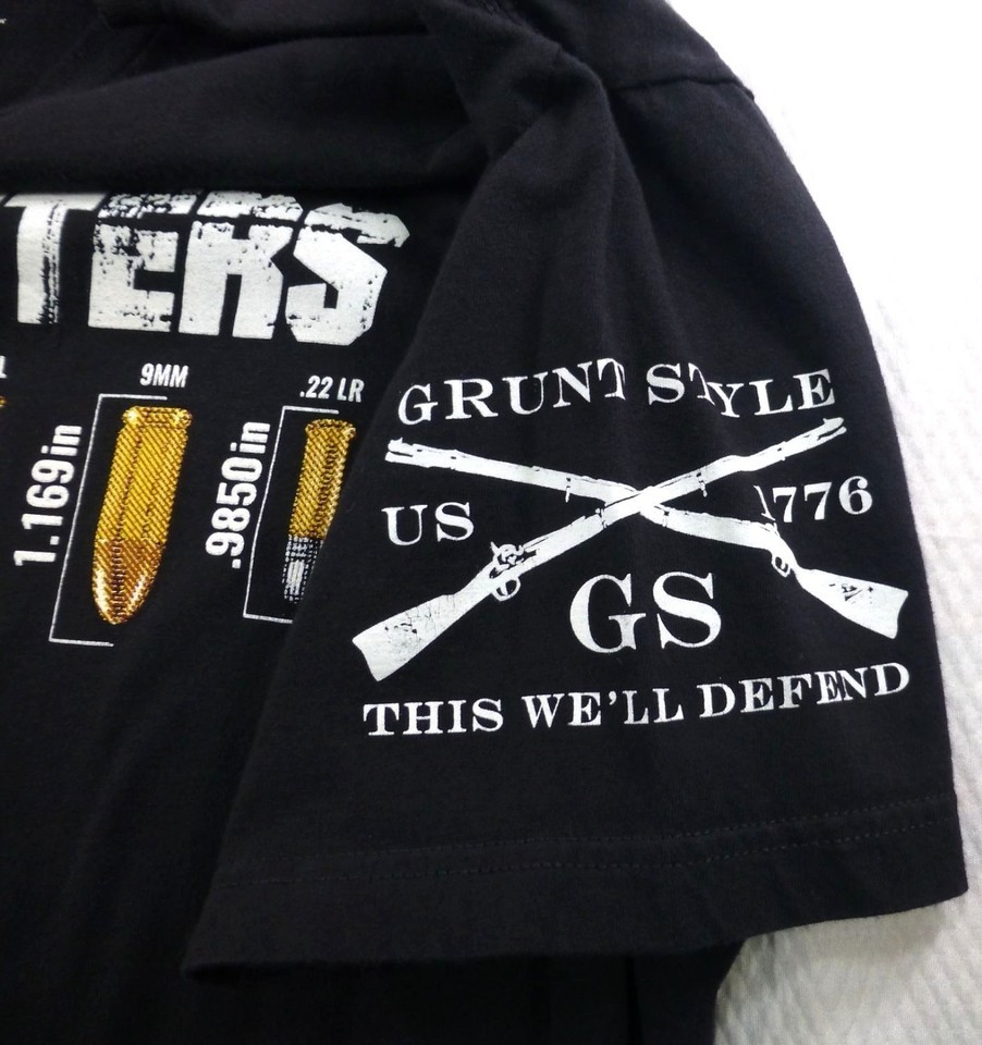 This Grunt Style shirt will help you make a statement: size matters when it comes to comfort and style. Show off your patriotism with its bold graphics, including a flag and a variety of ammunition sizes. Ideal for making a big impression without saying a word, even if you don't really care about the size.