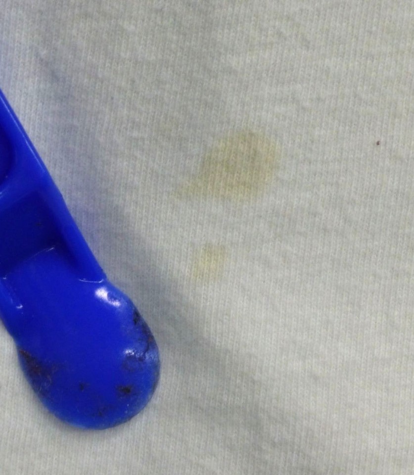 “Stains on front” |